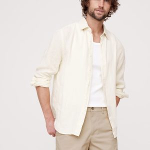 Zip fly with button closure. Belt loops.