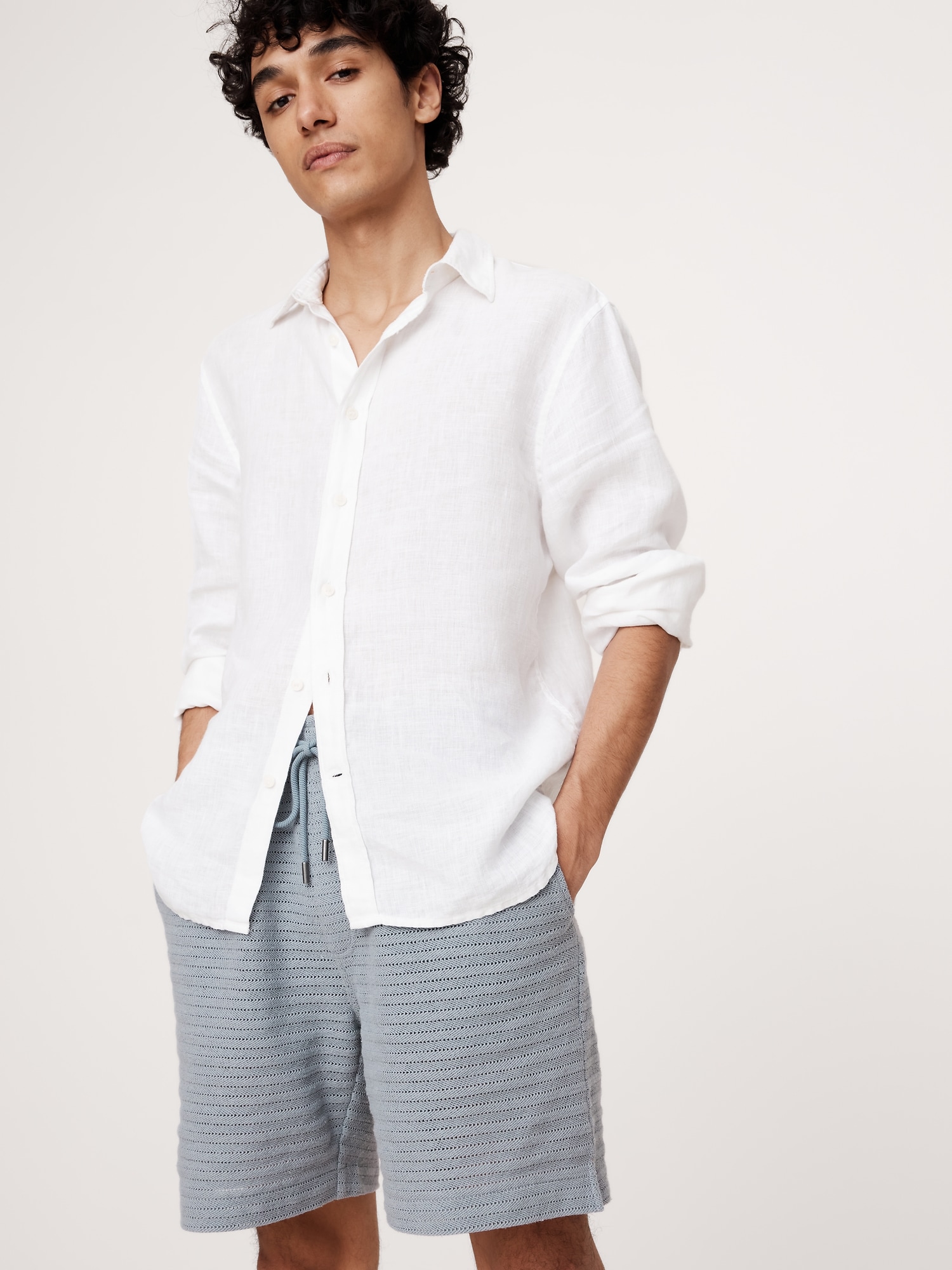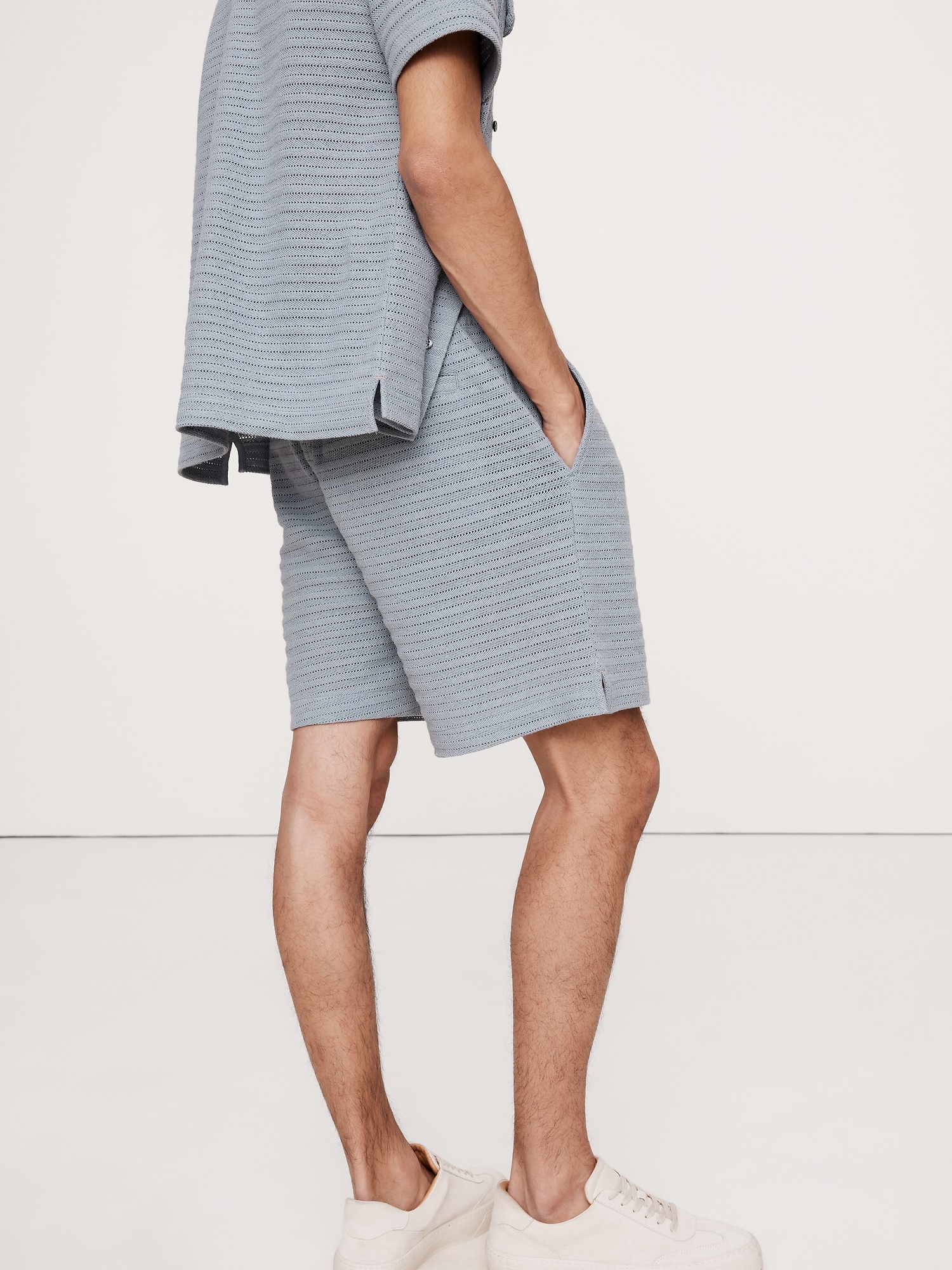 The vibe is off-duty. These drawstring shorts are cut from a textured herringbone fabric we love for its retro look and open stitches. Style with the matching resort shirt or wear with a classic henley tee. fit: A straight and easy fit.