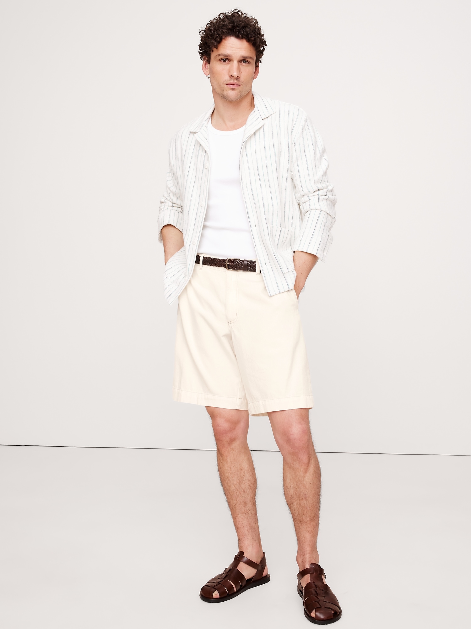 An easy Bermuda short, just in time for summer. These are cut from a soft denim fabric we fell hard for because it looks like the best vintage pieces. Plus, we added a hidden elastic and interior drawstring to the waistband for a custom fit.
