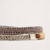 This double-wrap bracelet is crafted from vegetable-dyed leather with hand-knotted macramé-style cord and a stretch of handwoven sterling silver.