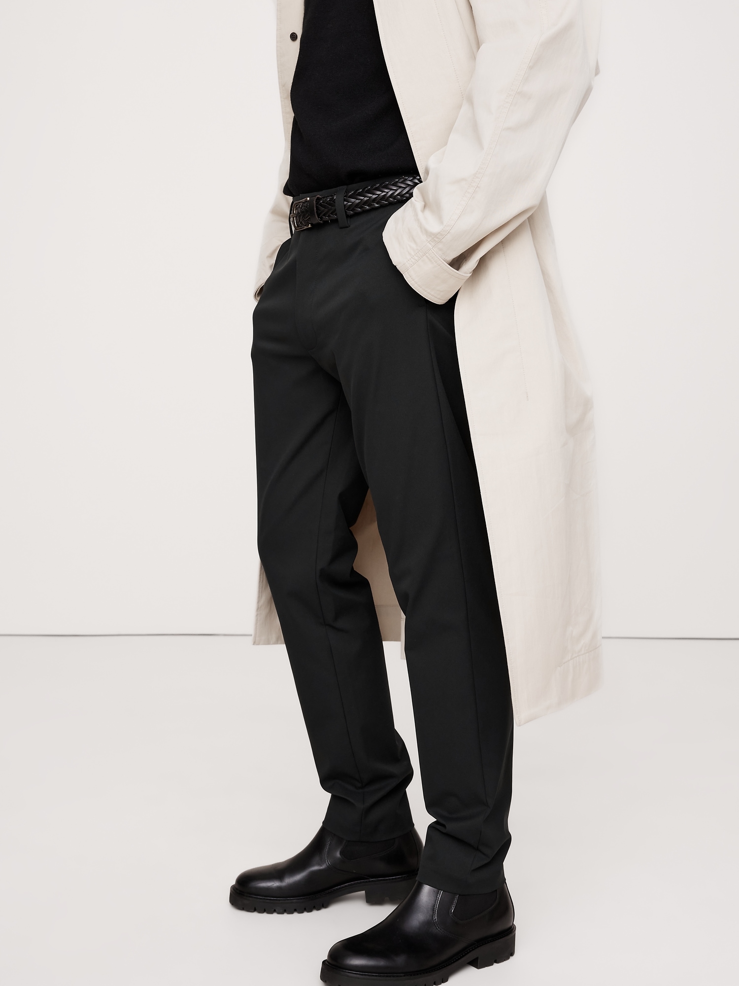 If chinos could be overachievers—this lightweight chino does the most thanks to a Solotex® twill fabric that balances performance, comfort, and a put-together appearance. Plus, our designers added concealed elastic at the back waist for a custom fit. Water-Repellant, Breathable, 4-Way StretchSlim Fit: A slim fit designed for those who like more room through the seat and thigh. Mid-rise (11\”), slim though hip and thigh with a tapered leg.
