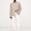 Zip fly with hook-and-bar closure. Belt loops.