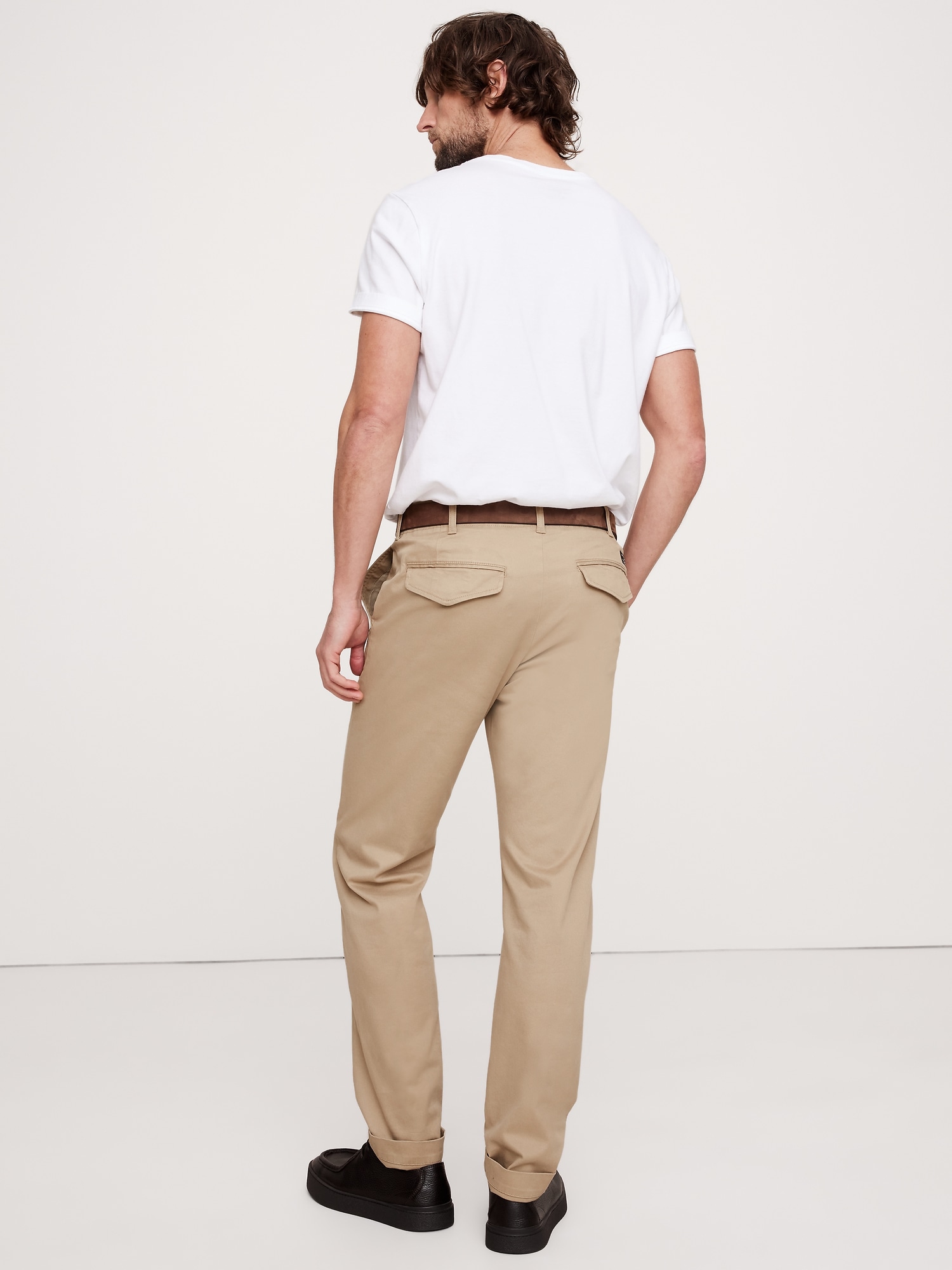 Modeled after a vintage pair of officer’s chinos, we cut this slim-fit pant from a stretchy, organic cotton twill. We added an extra stone wash for a broken-in look and an already-loved feel.