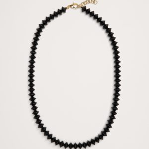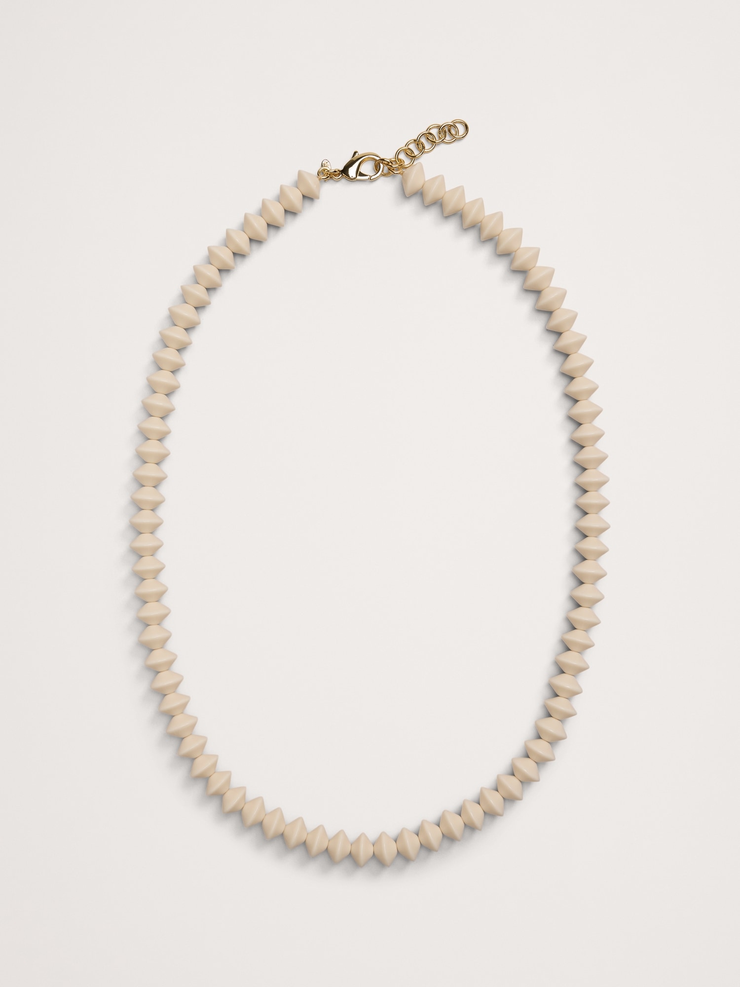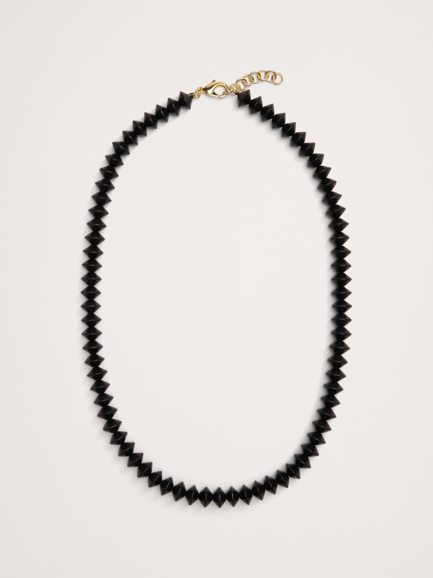 A perfect layering piece, this bicone bead necklace made with smooth oversized resin beads has an adjustable length gold-plated brass chain and lobster closure.