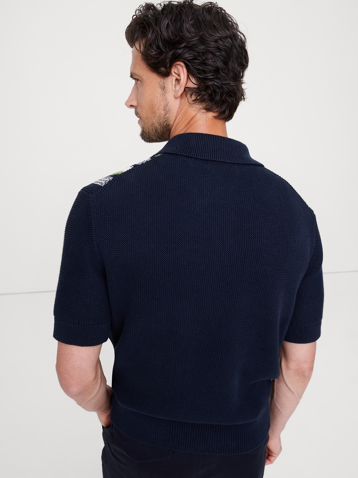 We’re on a mission to make a better-than-vintage sweater polo. Here, in a stretch-cotton, bouclé yarn that’s a little heavier to support you as the weather cools.