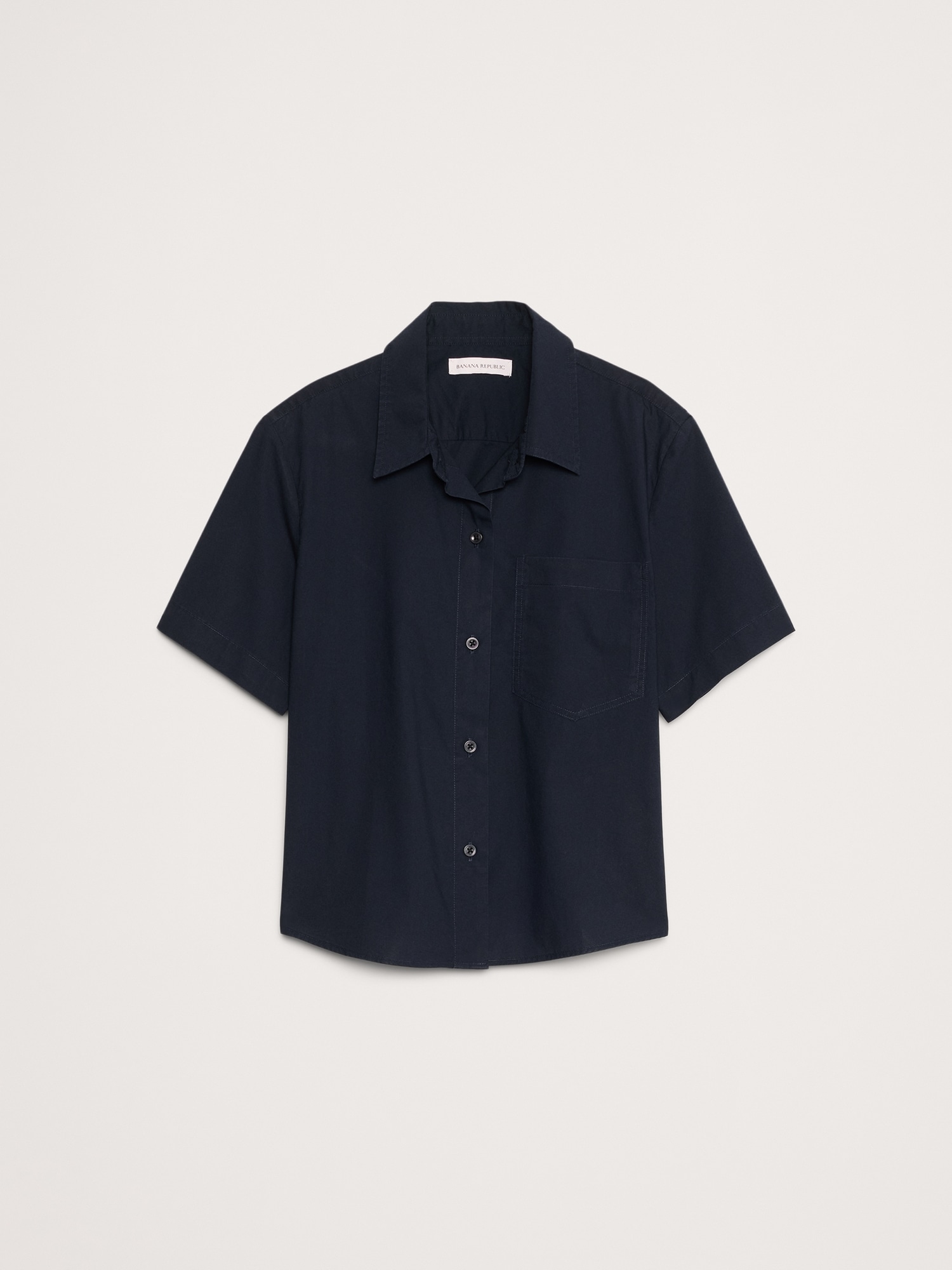 Boxy Cotton Poplin Short-Sleeve Shirt