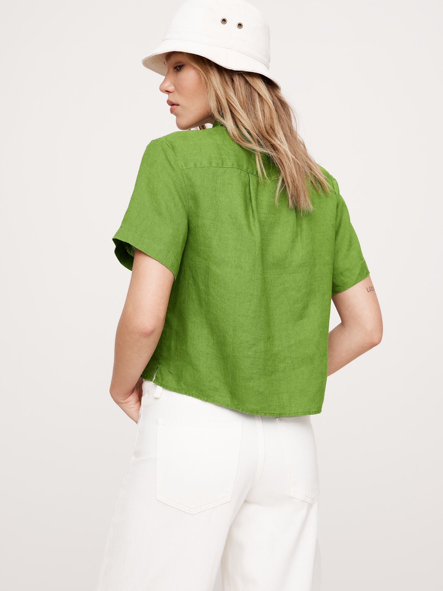 Just a little boxy, we kept the fit of this shirt easy and cut it in 100% certified-European linen. Make it a set with matching linen pants or shorts.