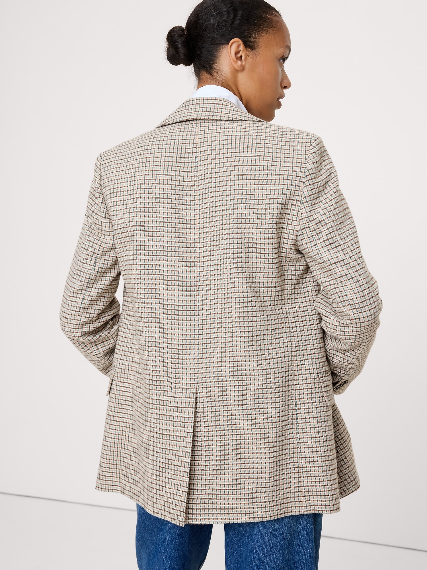 Our take on a classic borrowed-from-the-boys silhouette, we cut this boyfriend-fit blazer for a tailored-yet-relaxed look. For fabric, reached for an Italian flannel fabric that’s warm-handed and a little dressed up.