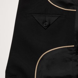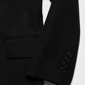 Notch lapel with single-button front.