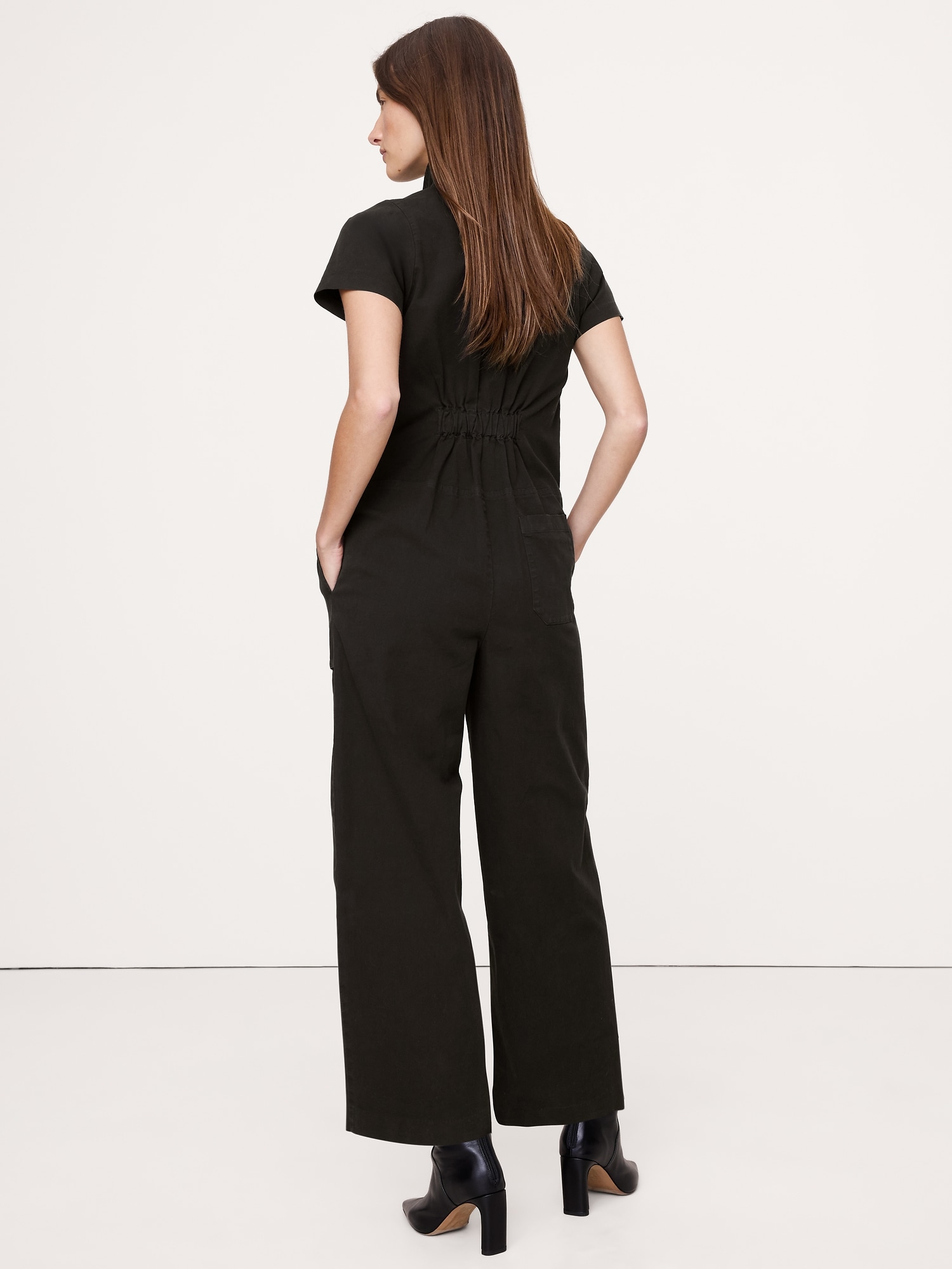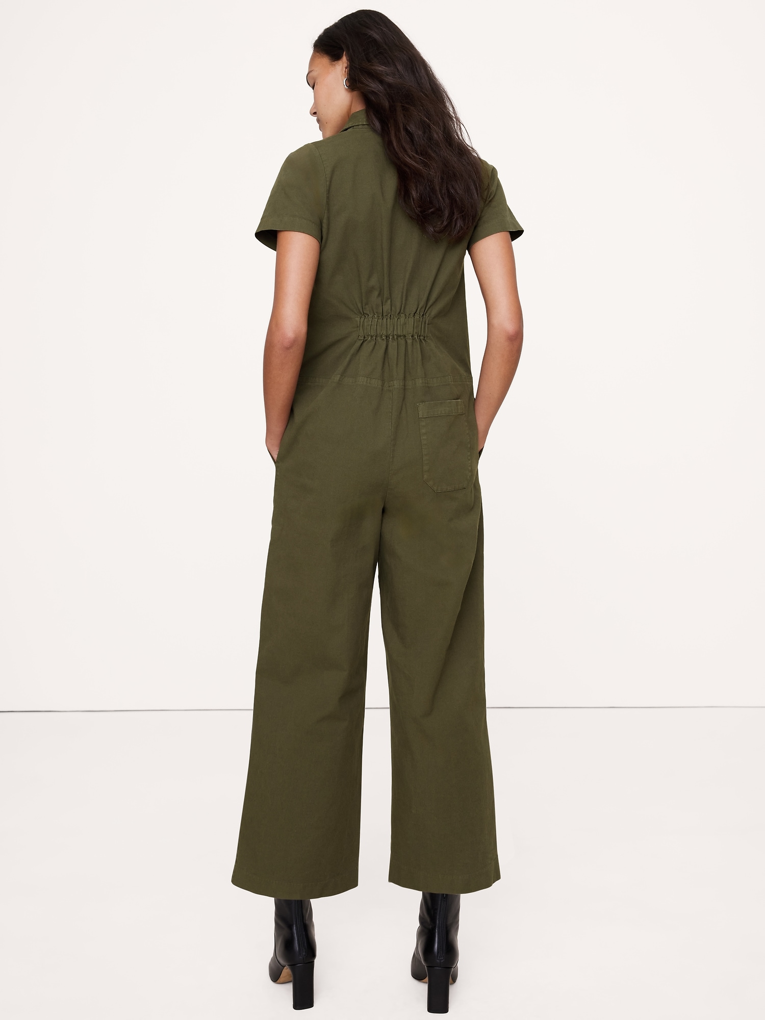 Just a little something we cut this classic utility jumpsuit from rugged, stretch-cotton canvas finished with a garment-wash for softness and lived-in color.
