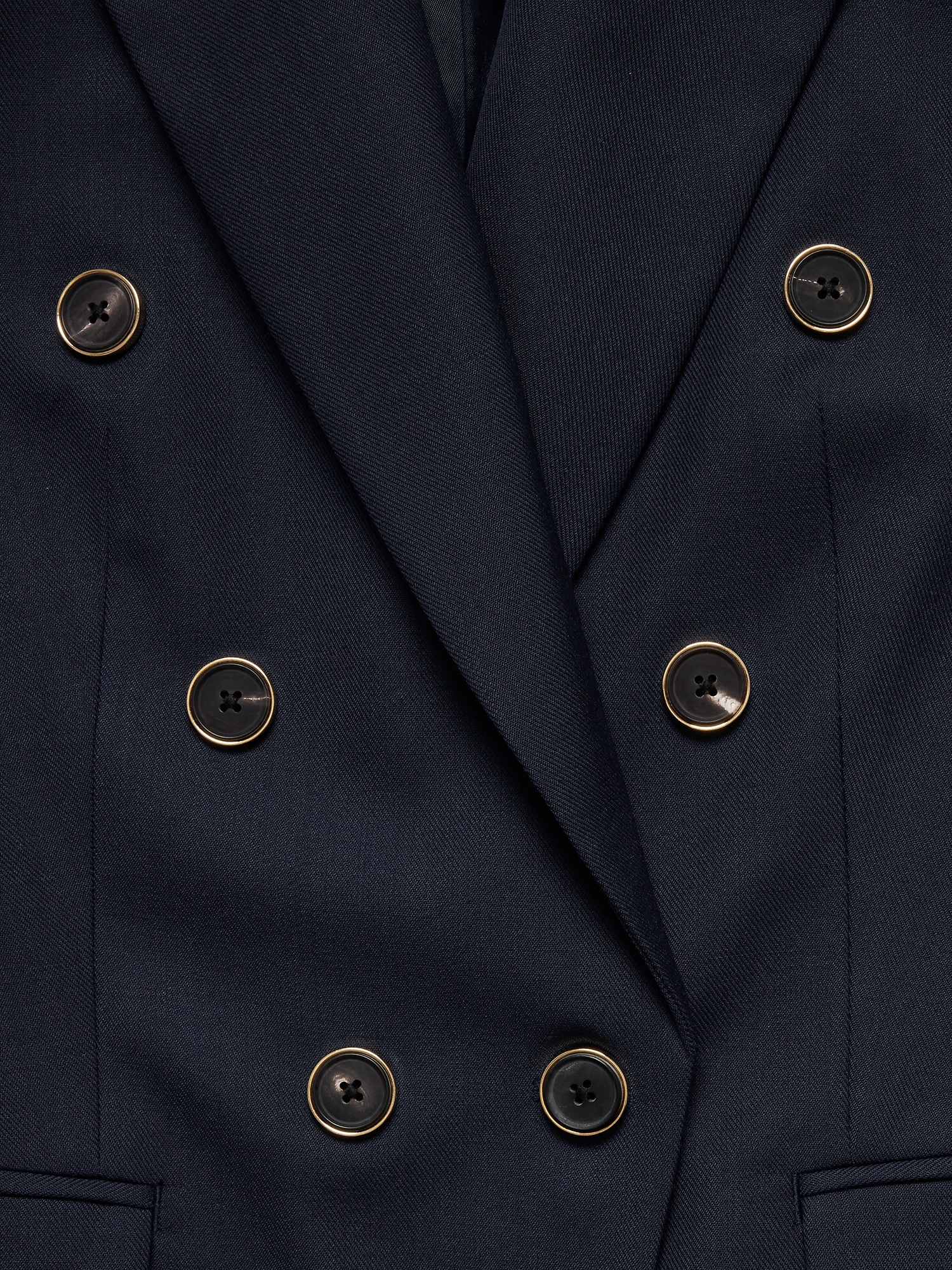 Expertly tailored from a beautiful wool-blend twill, this double-breasted blazer is cut for a slim fit with sharp shoulders. Here, we refreshed the style with horn buttons with a delicate gold frame—a nod to the style’s maritime heritage.