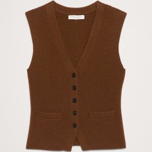 Style it on its own as a top or as a layer, this vest is knitted in our signature midweight cashmere yarn so it’s ideal in cooler seasons. Cut in a cropped length that sits just above the hips.