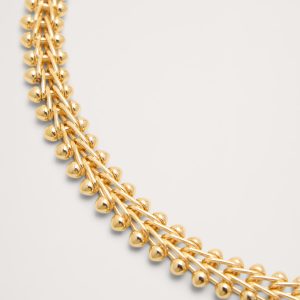A timeless and understated take on the classic chain-link necklace, that’s anything but basic with a woven herringbone links and punctuated with ball tips.