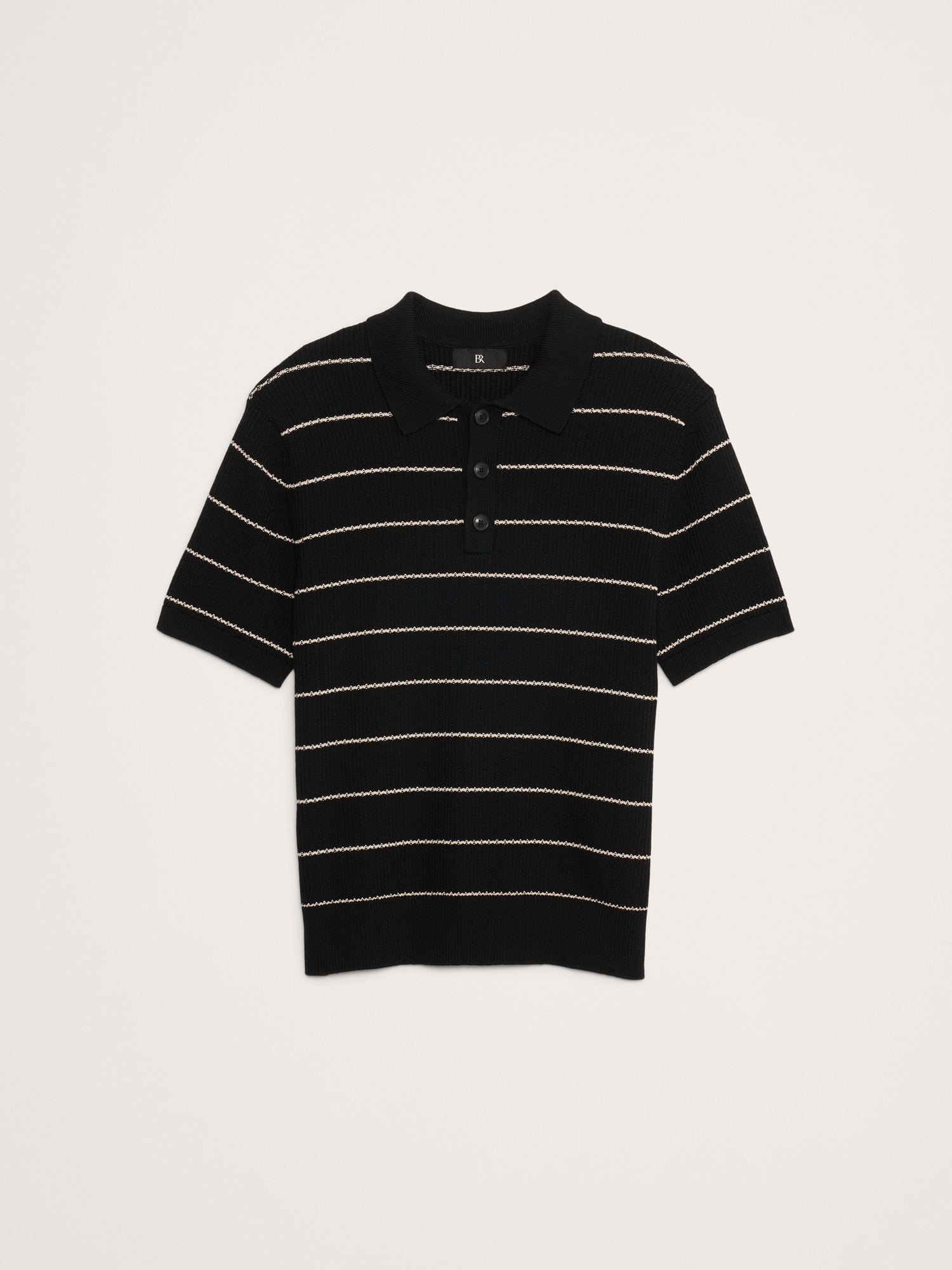 Polo collar with button-front placket.
