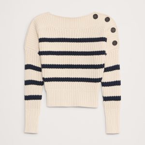 We love a boatneck sweater. Here, we borrowed the button-shoulder detail from a vintage sweater, and recreated it in one of our favorite organic cotton yarns—one we love for its softness and all-season weight.