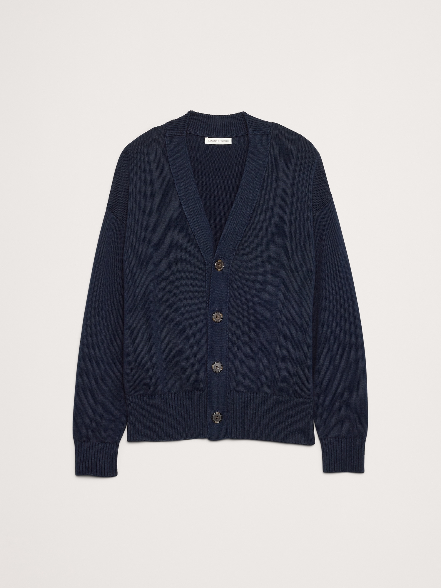Boxy, contemporary, cool. We cut this cardigan sweater in our favorite certified-organic cotton so it’s perfect in all seasons.