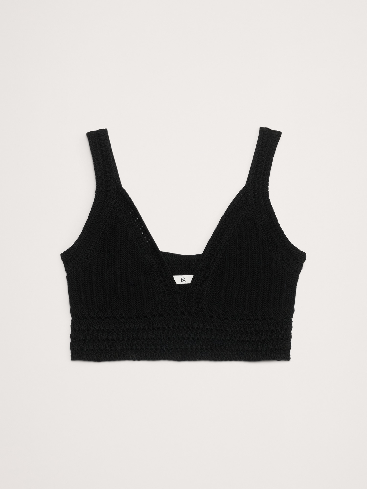 Our take on the season’s bralette styles, this top uses a mix of open, mesh-like stitches to mimic the look and feel of true crochet—in soft cotton.