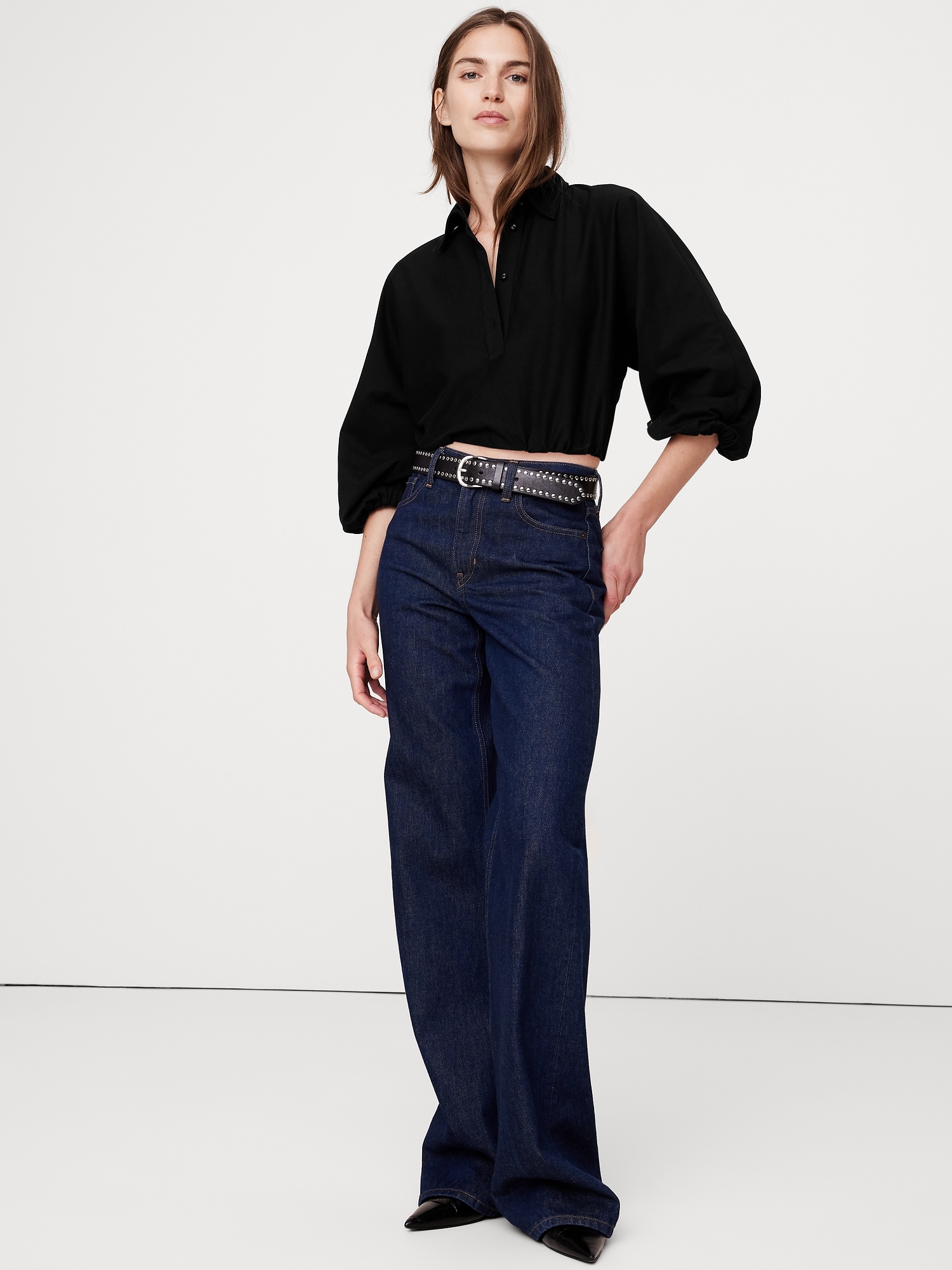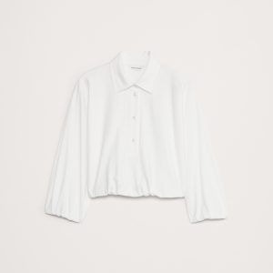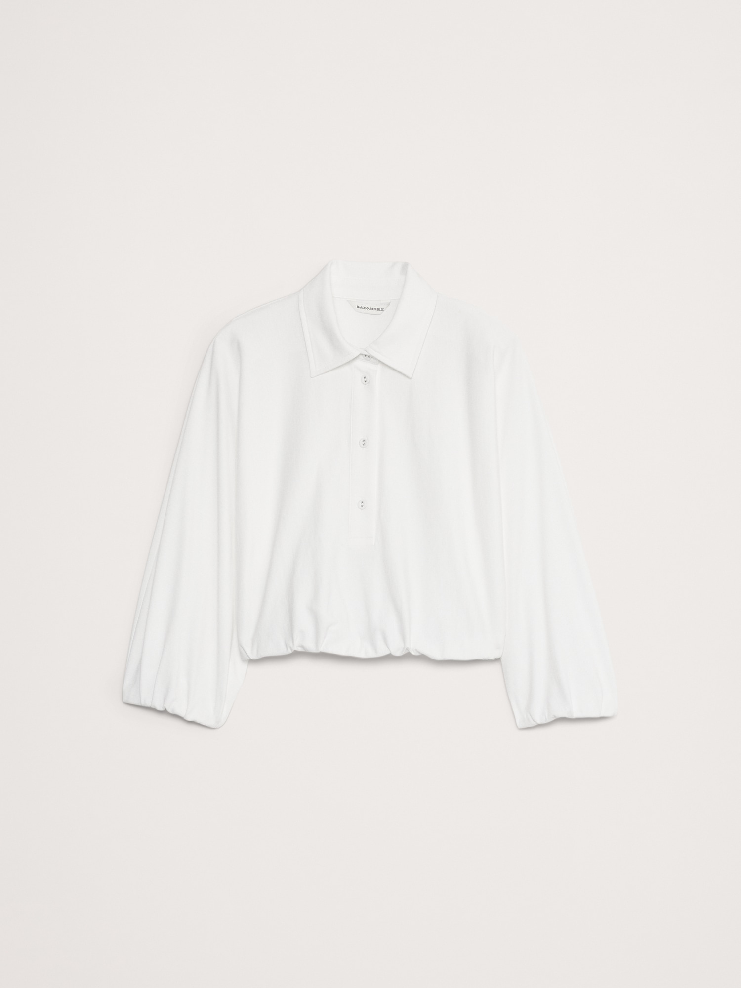 A classic rugby polo meets the season’s bubble-hem tops—in a 100% cotton jersey spun for a dense, yet lightweight feel against the skin.