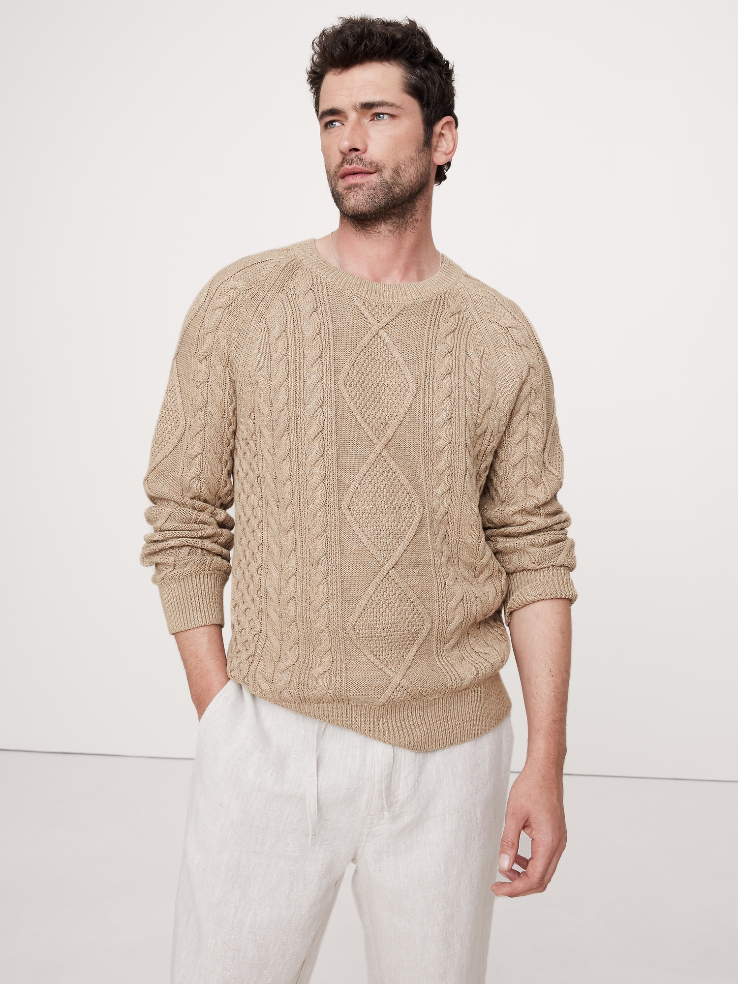 Cotton-Linen Cable-Knit Sweater