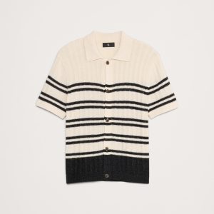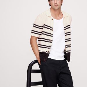 A cross between a resort shirt and a sweater polo, we used a ribbed knit stitch and our favorite cotton-linen yarn to keep this feeling warm-weather ready.