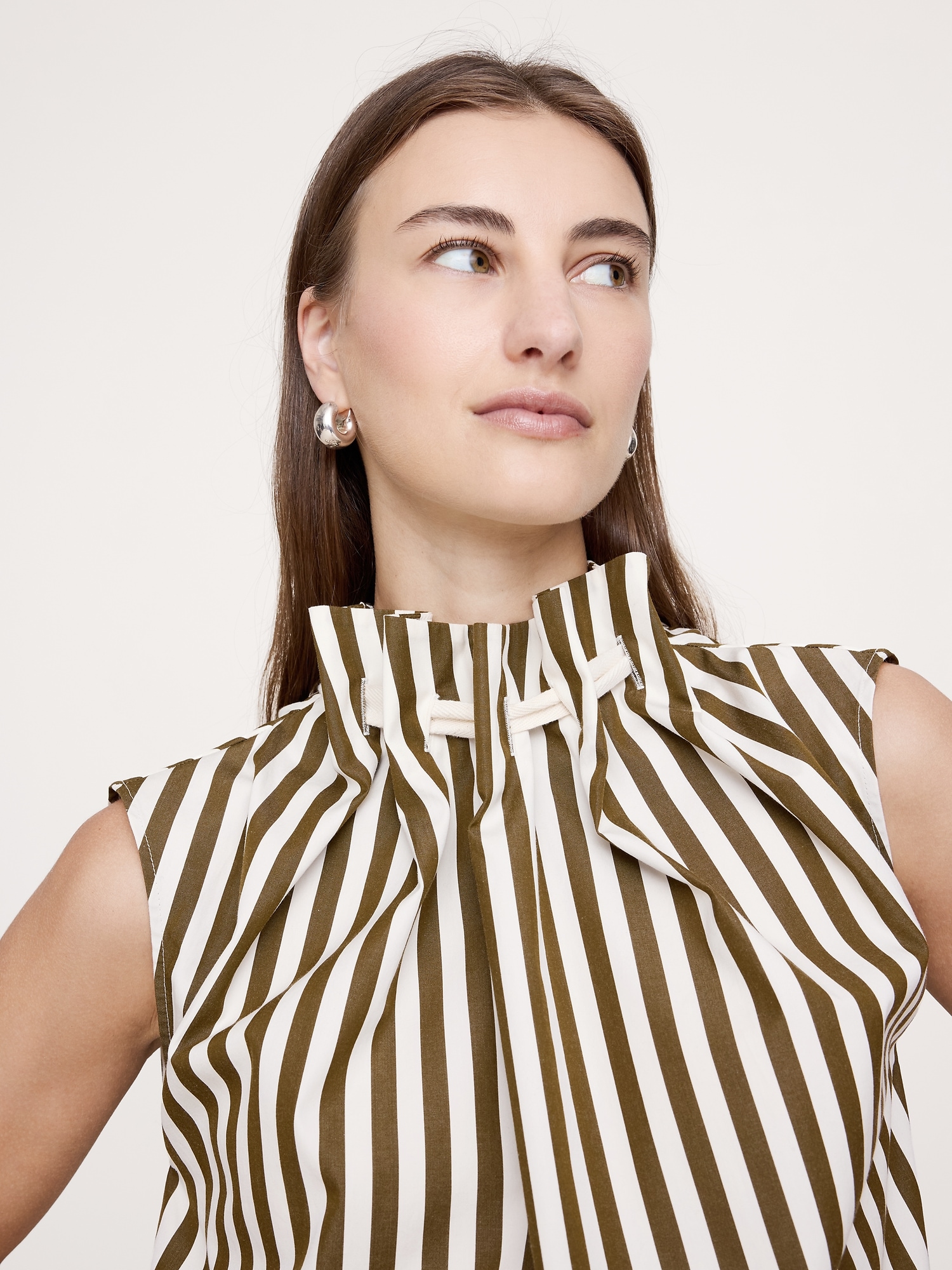 Cotton Poplin Cinch-Neck Top