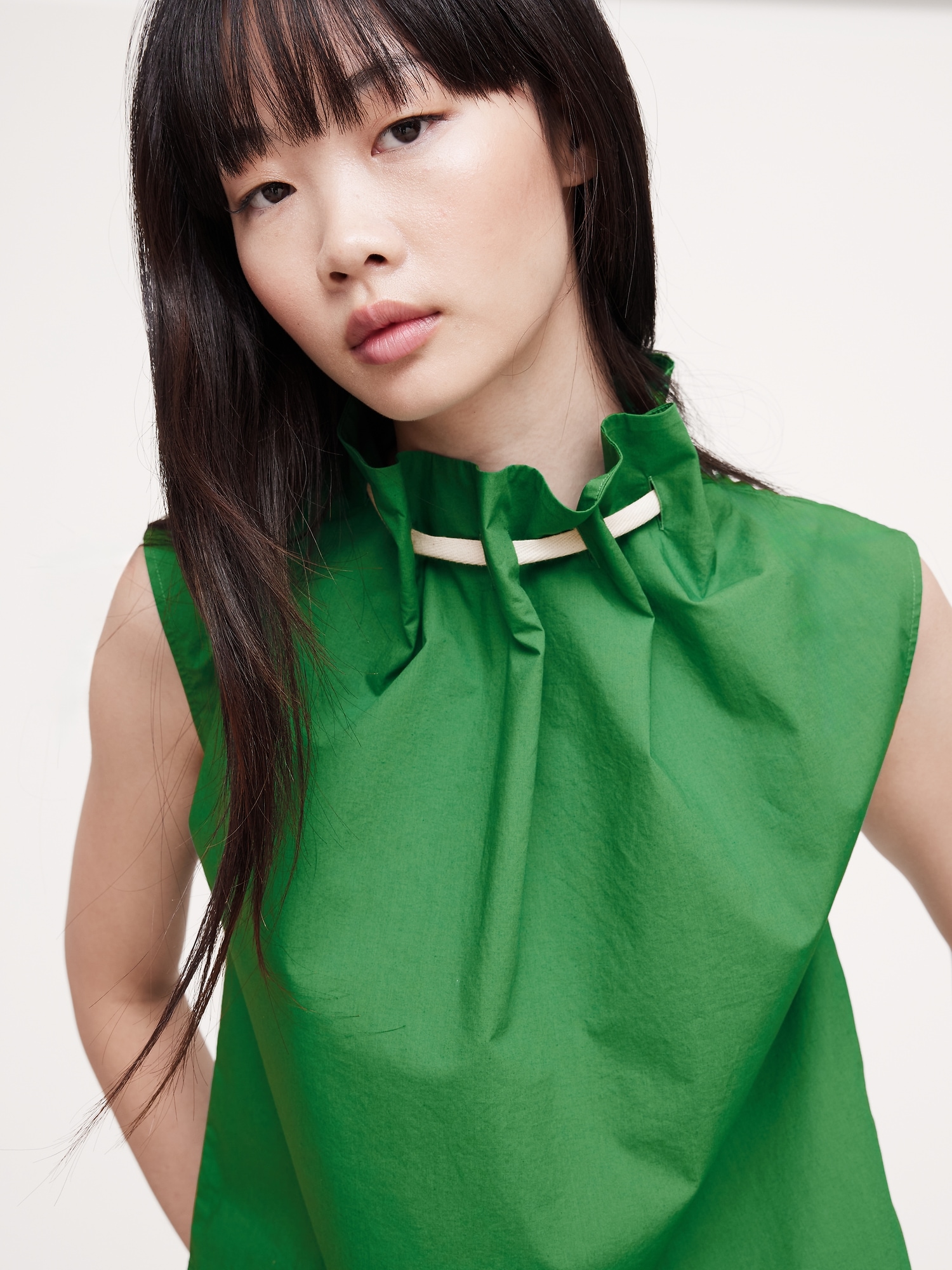Cotton Poplin Cinch-Neck Top