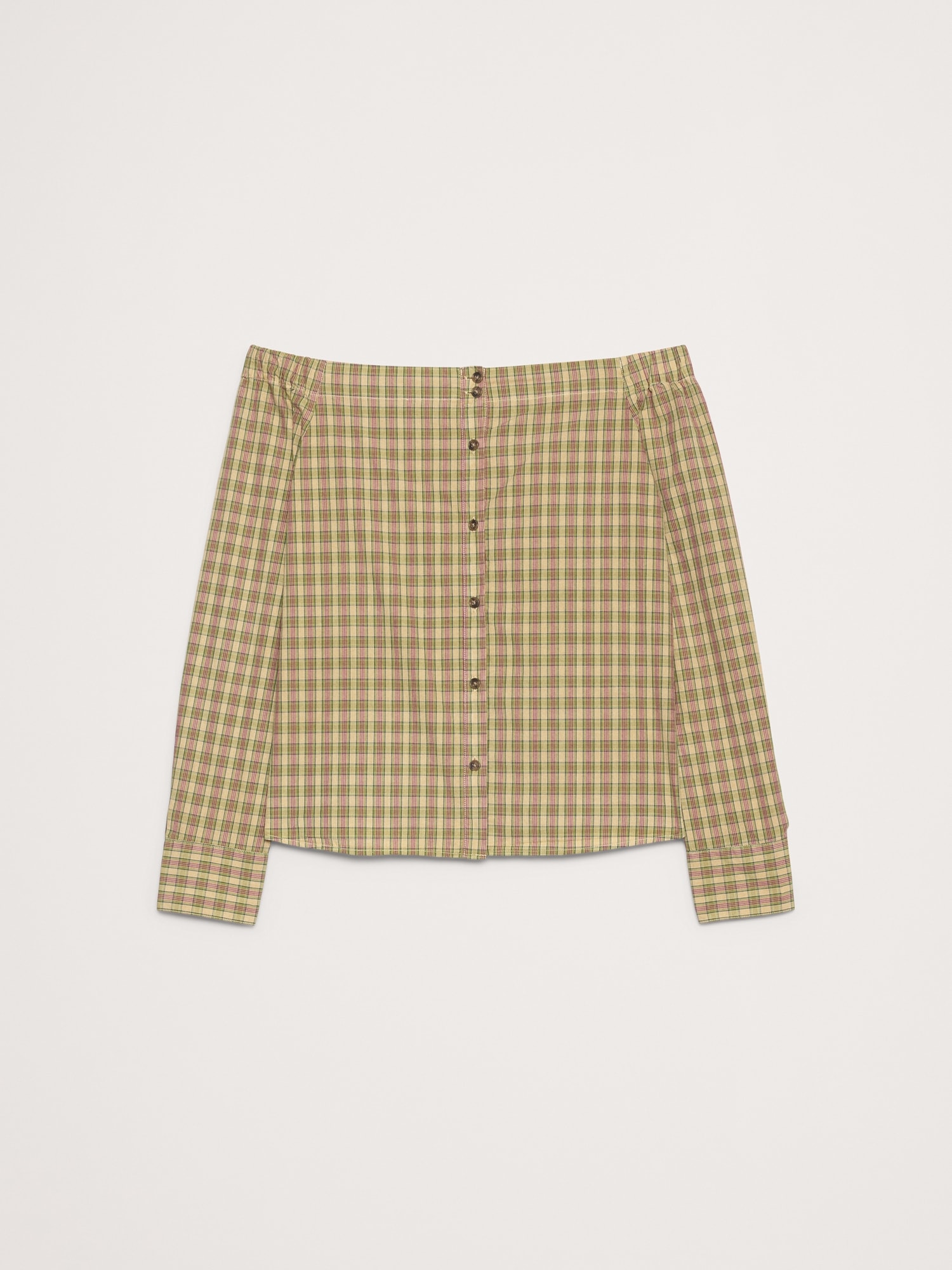 We reimagined the classic button-down shirt in an off-the-shoulder silhouette—in our premium 100% cotton poplin. Classic Fit: A straight and easy fit. Off-shoulder neckline. Button front. Unlined. #825956