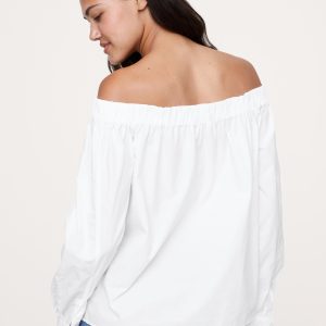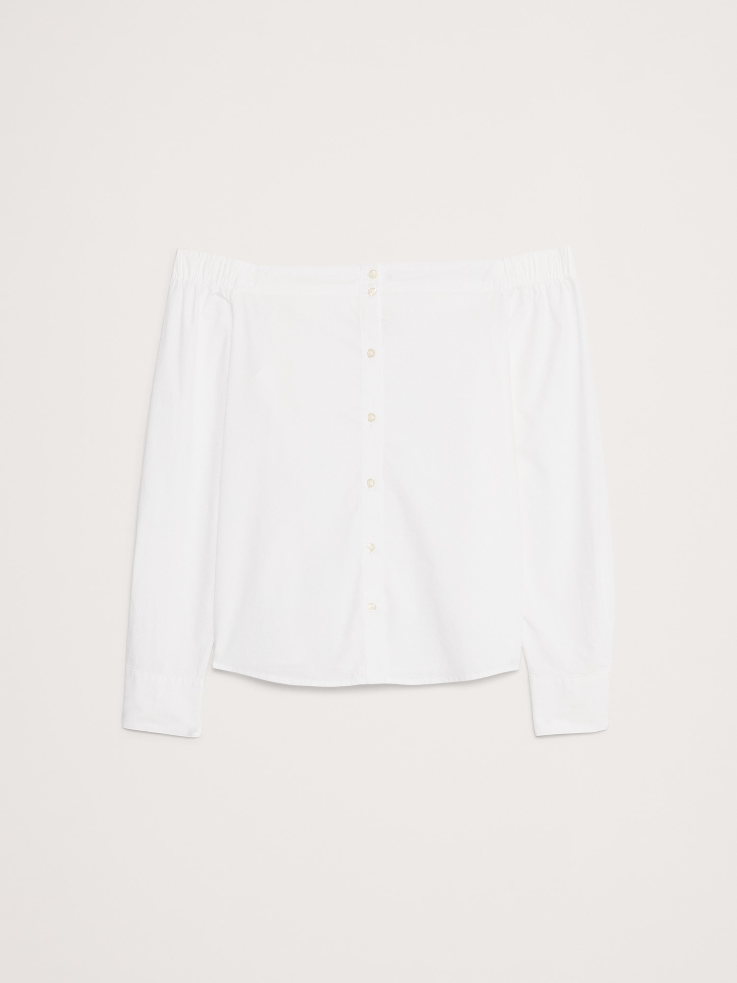We reimagined the classic button-down shirt in an off-the-shoulder silhouette—in our premium 100% cotton poplin. Classic Fit: A straight and easy fit. Off-shoulder neckline. Button front. Unlined. #826022