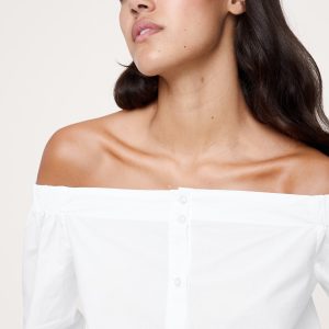 We reimagined the classic button-down shirt in an off-the-shoulder silhouette—in our premium 100% cotton poplin.