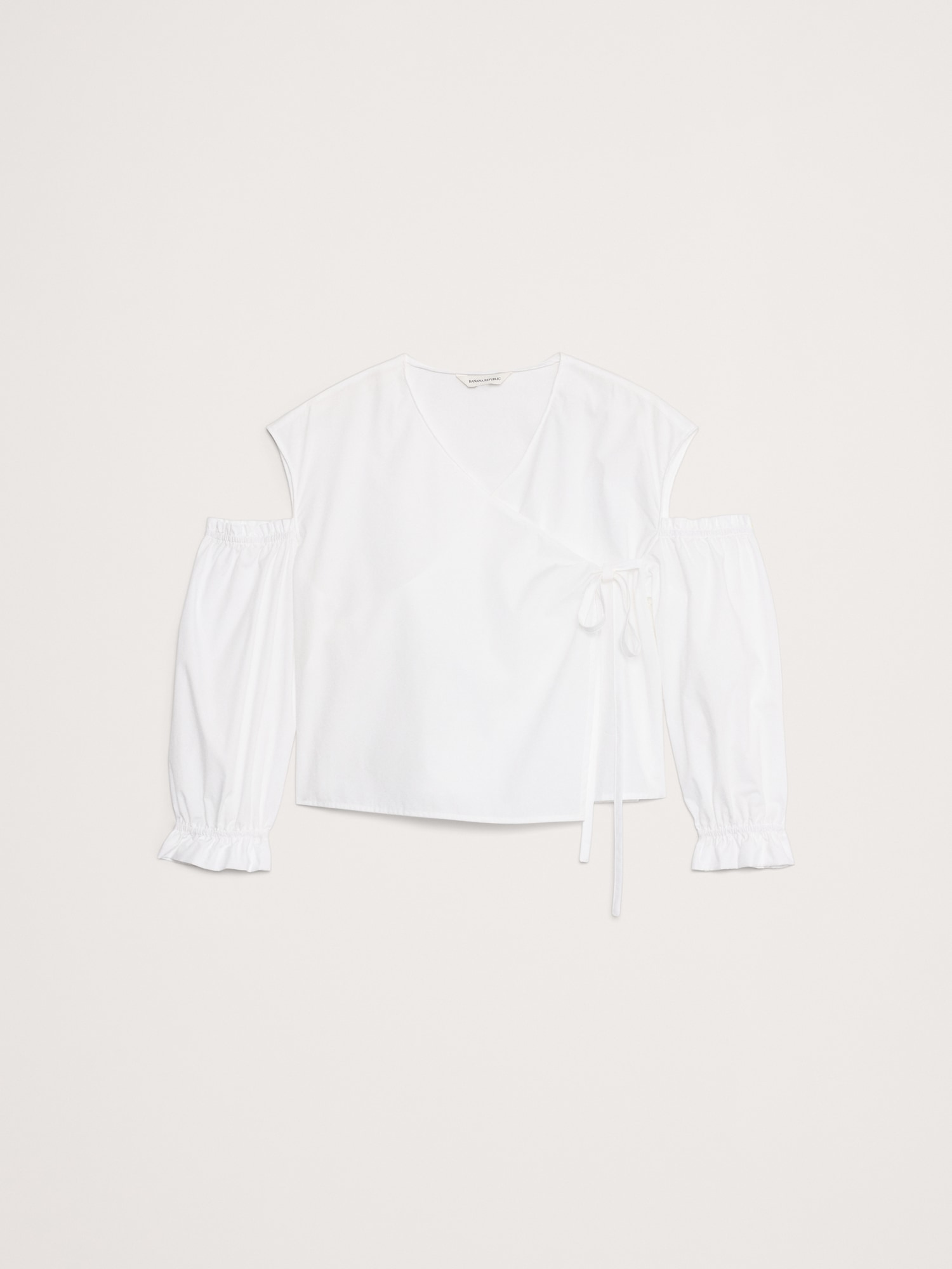 We cut this easy top with a wrap front and cut-out details—in our premium 100% cotton poplin.