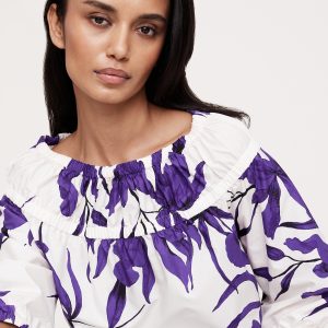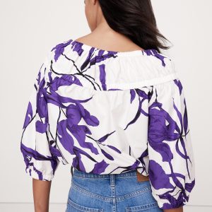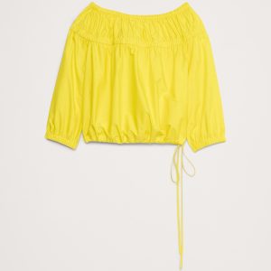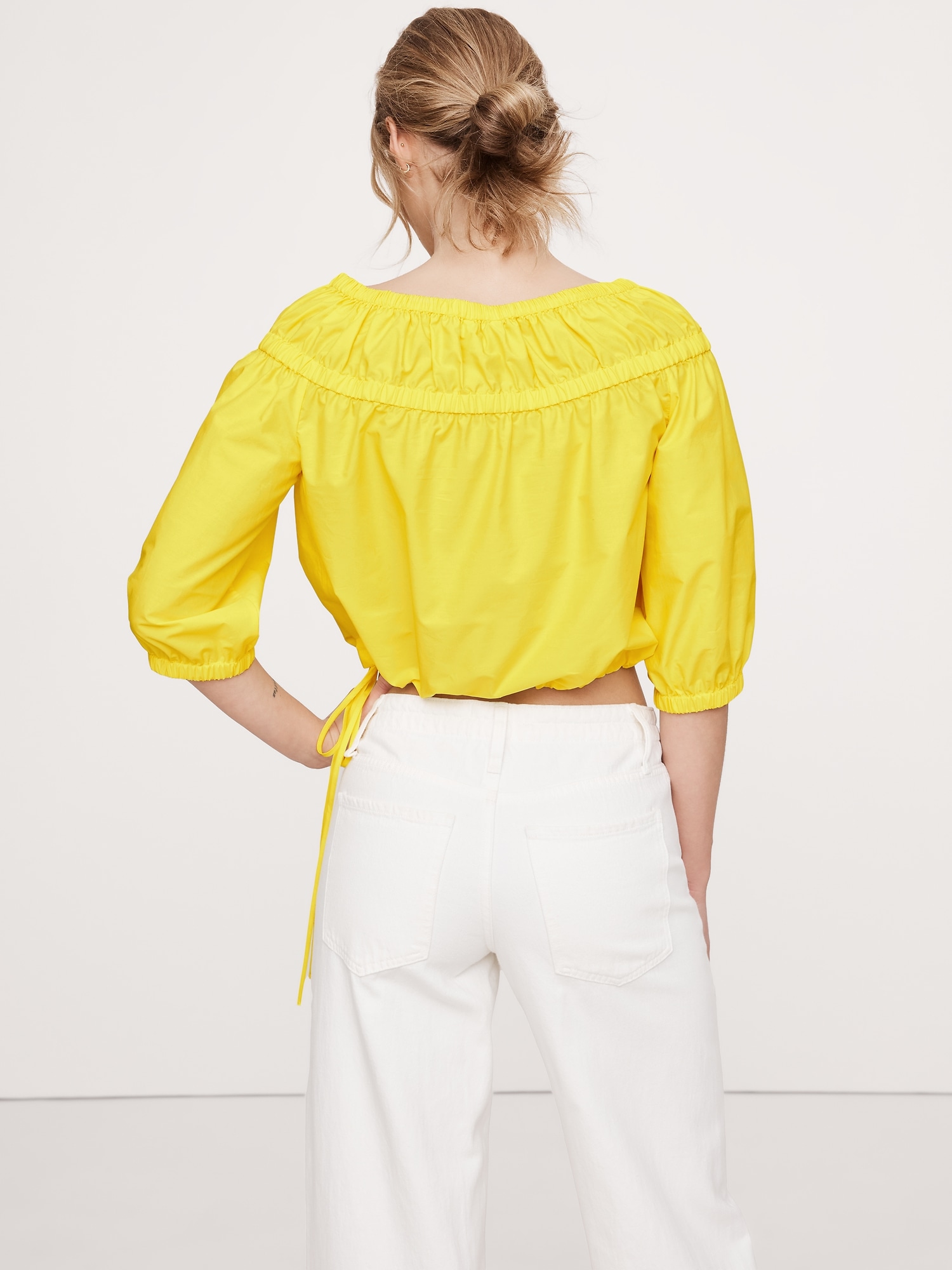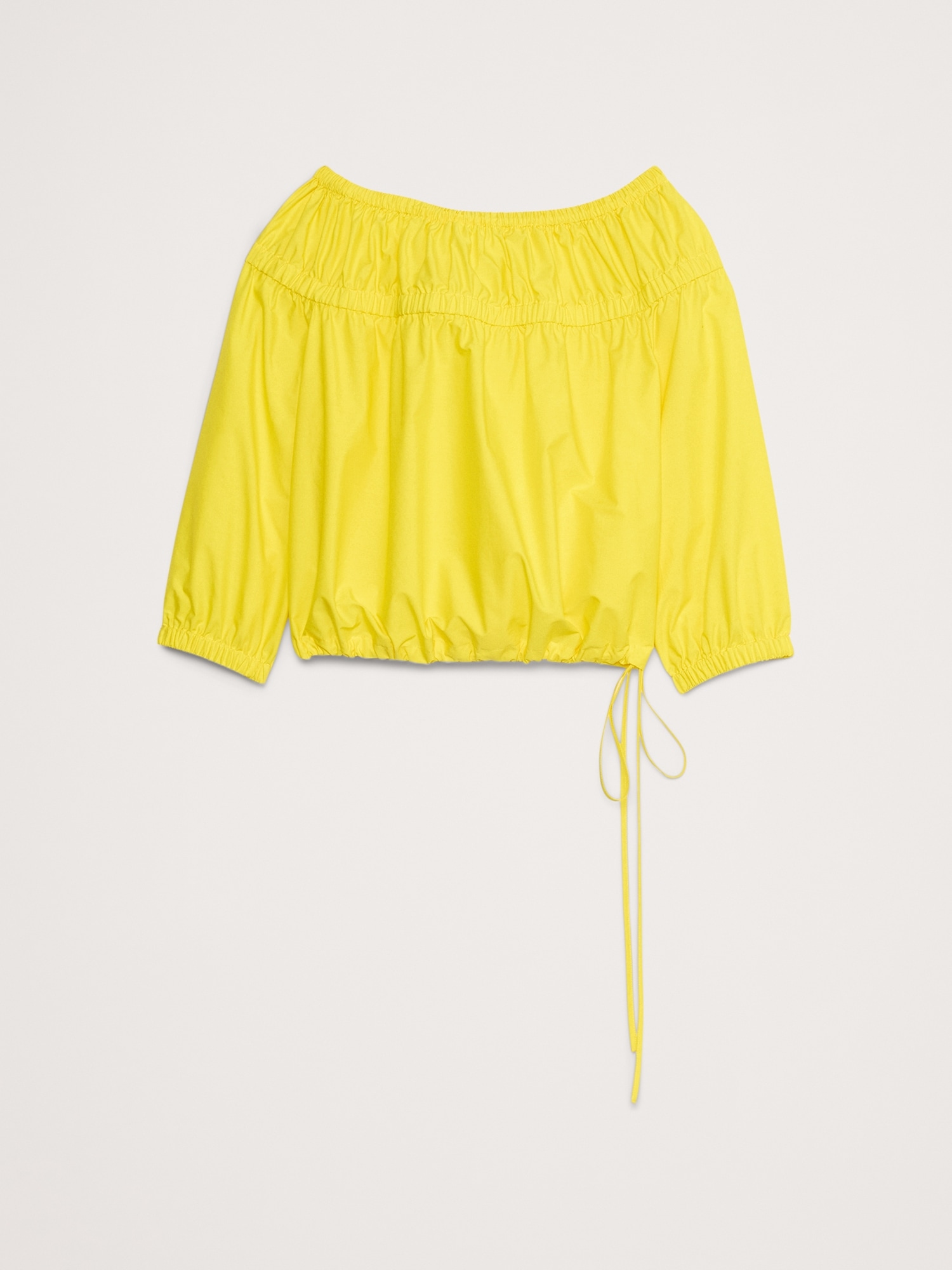 Cotton Poplin Ruched Bubble-Hem Top