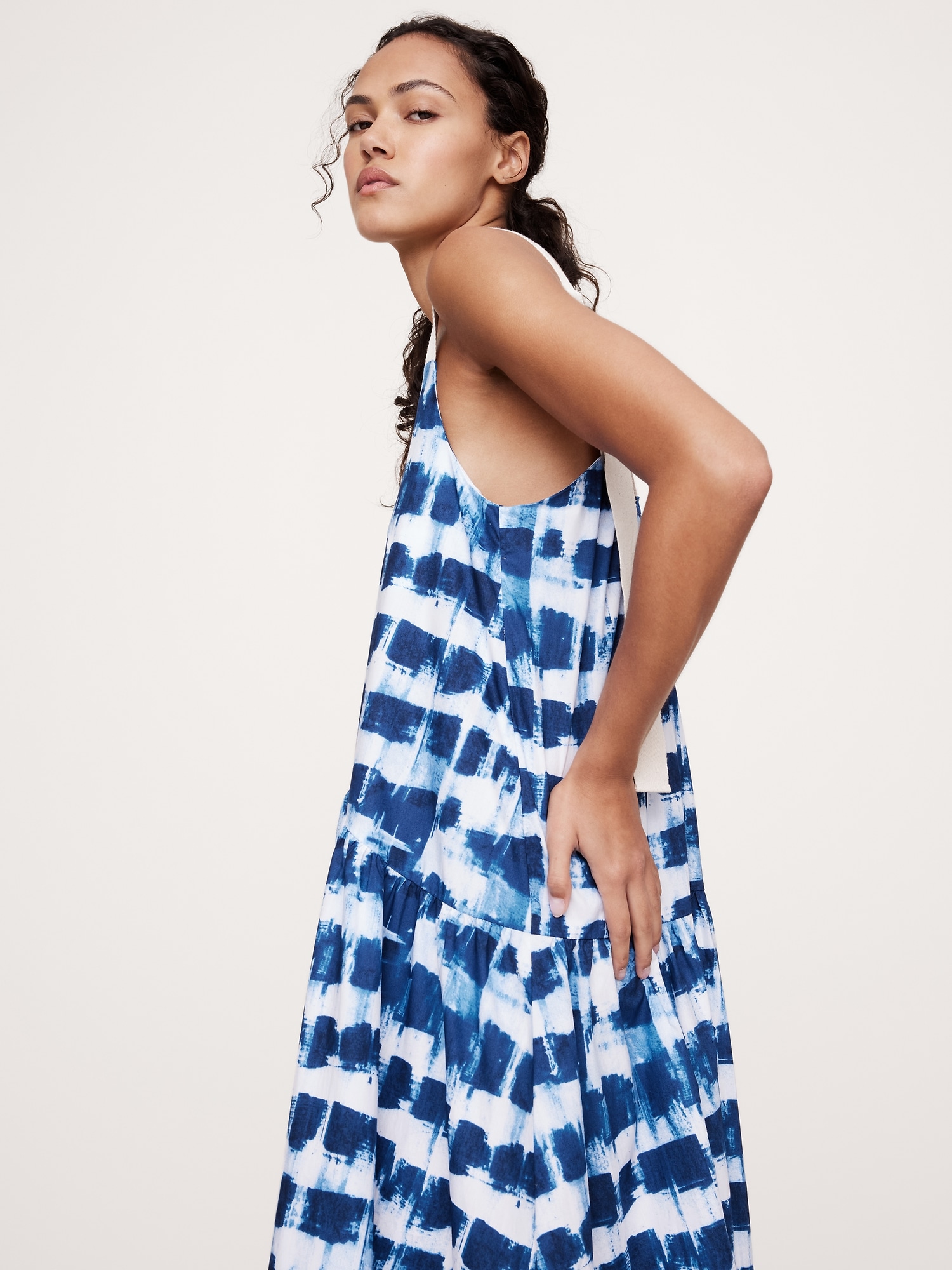 Cut from signature 100% cotton poplin, we kept the fit of this maxi dress easy, with an A-line silhouette. We added long, slider straps as a nod to our heritage of adventure.