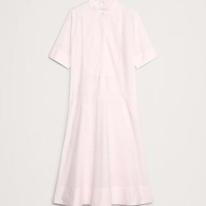 Cotton Poplin Tuxedo-Front Midi Dress