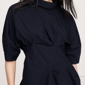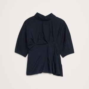 Deconstructed, reconstructed. This cotton poplin top nods at the season’s twisted shirting trend with rear button placket and pleats that wrap around the waist.
