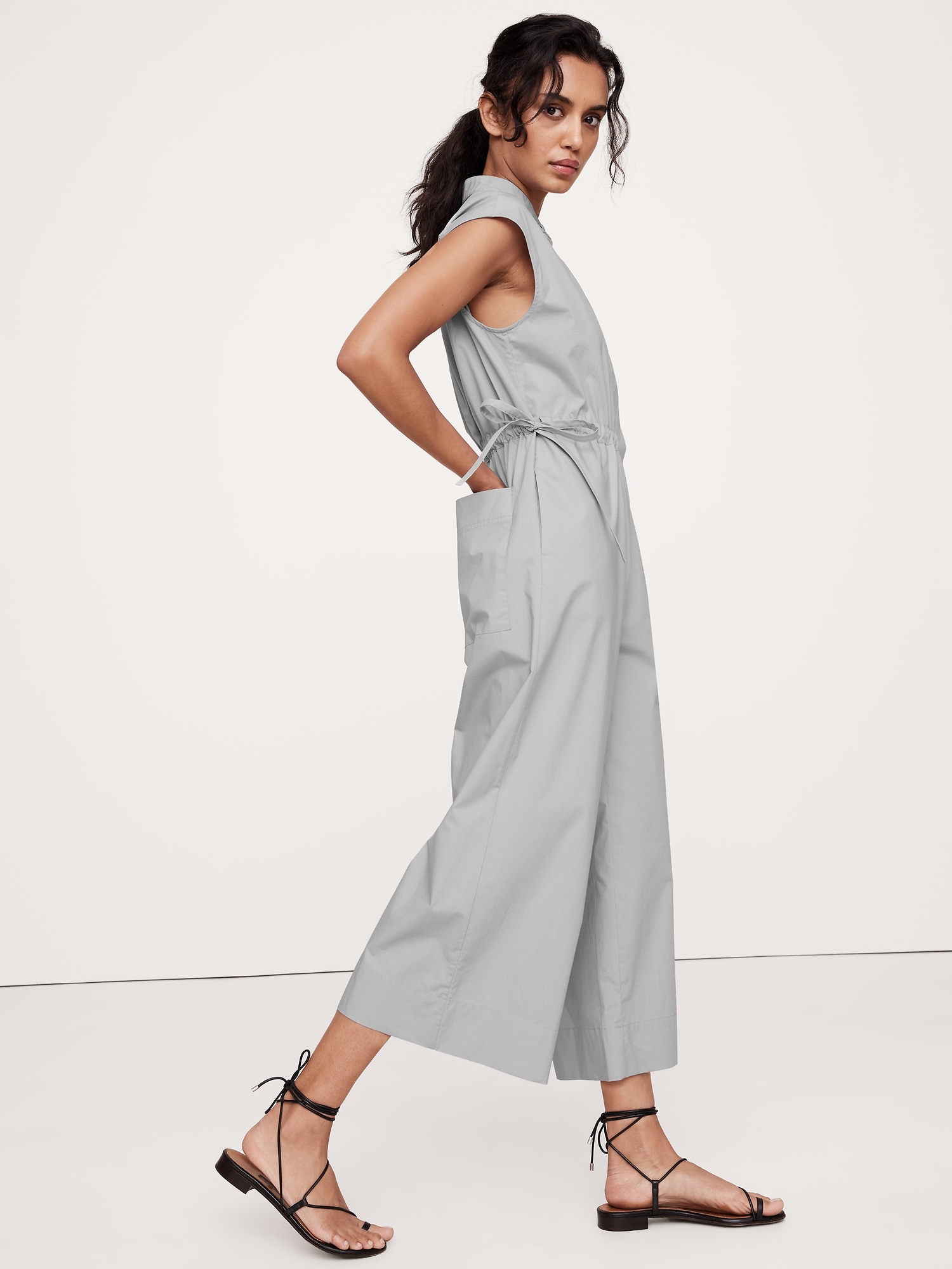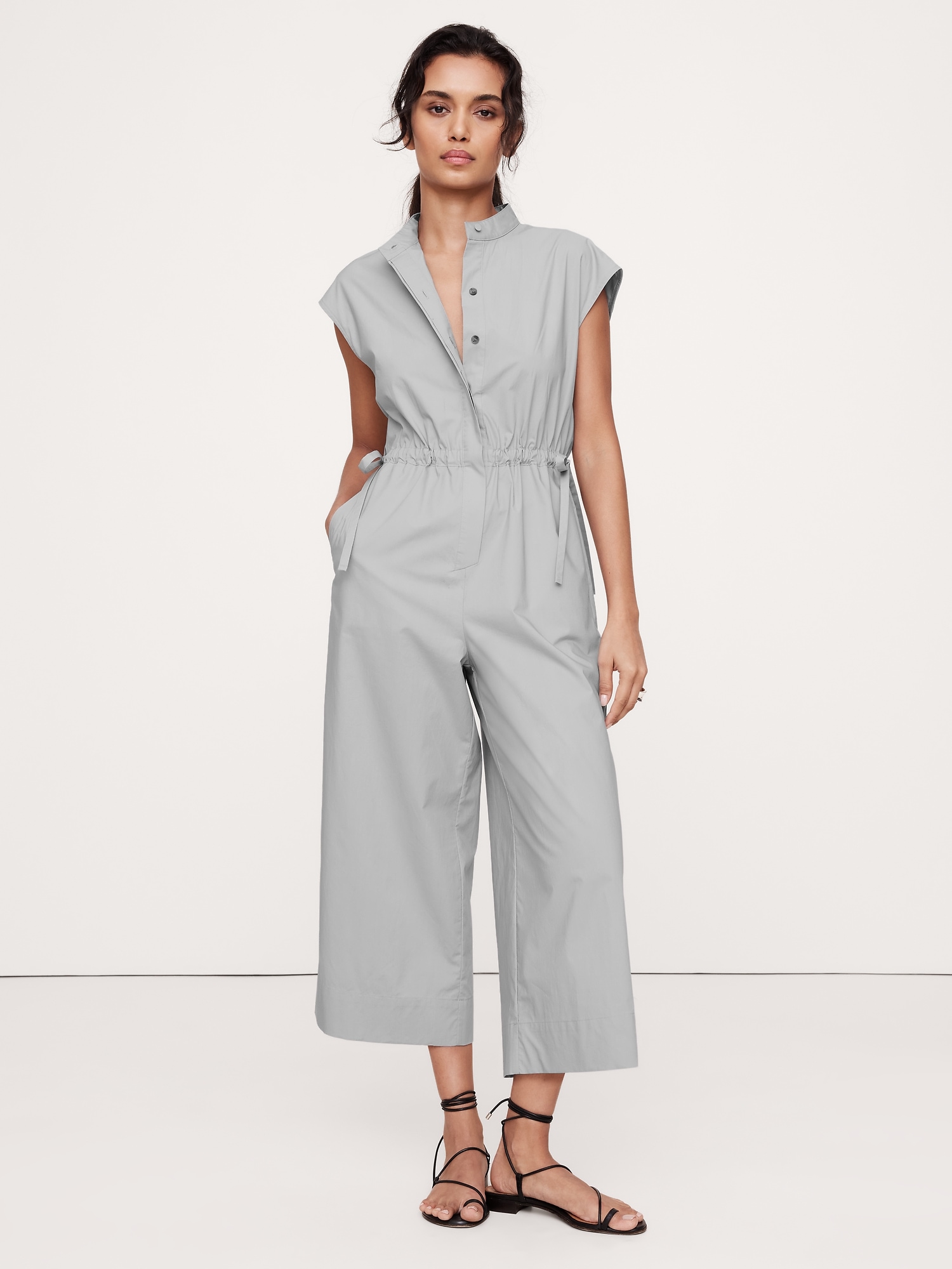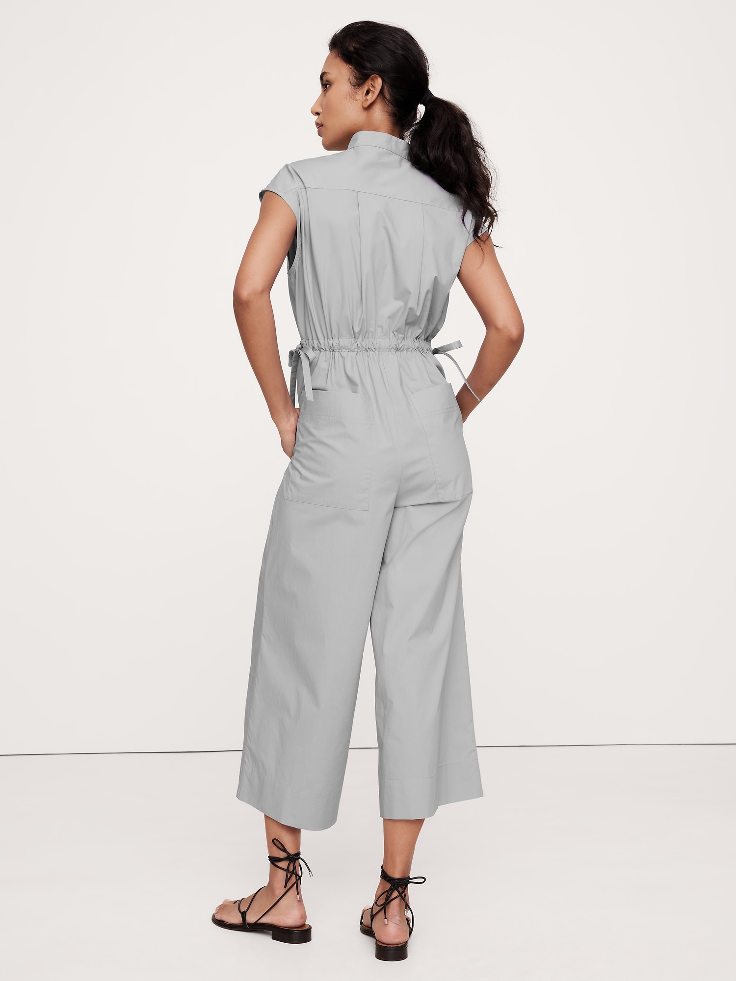 Cotton Poplin Wide-Leg Cropped Jumpsuit