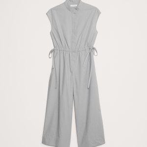 A reimagined boilersuit in 100% cotton poplin. We kept the utilitarian feel with a banded collar and concealed button front, but added a drawstring detail to define the waist.