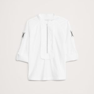 A classic popover, with a utilitarian twist thanks to a zip-front placket, banded collar, and roll-tab sleeves with clip hardware—in our 100% cotton poplin.