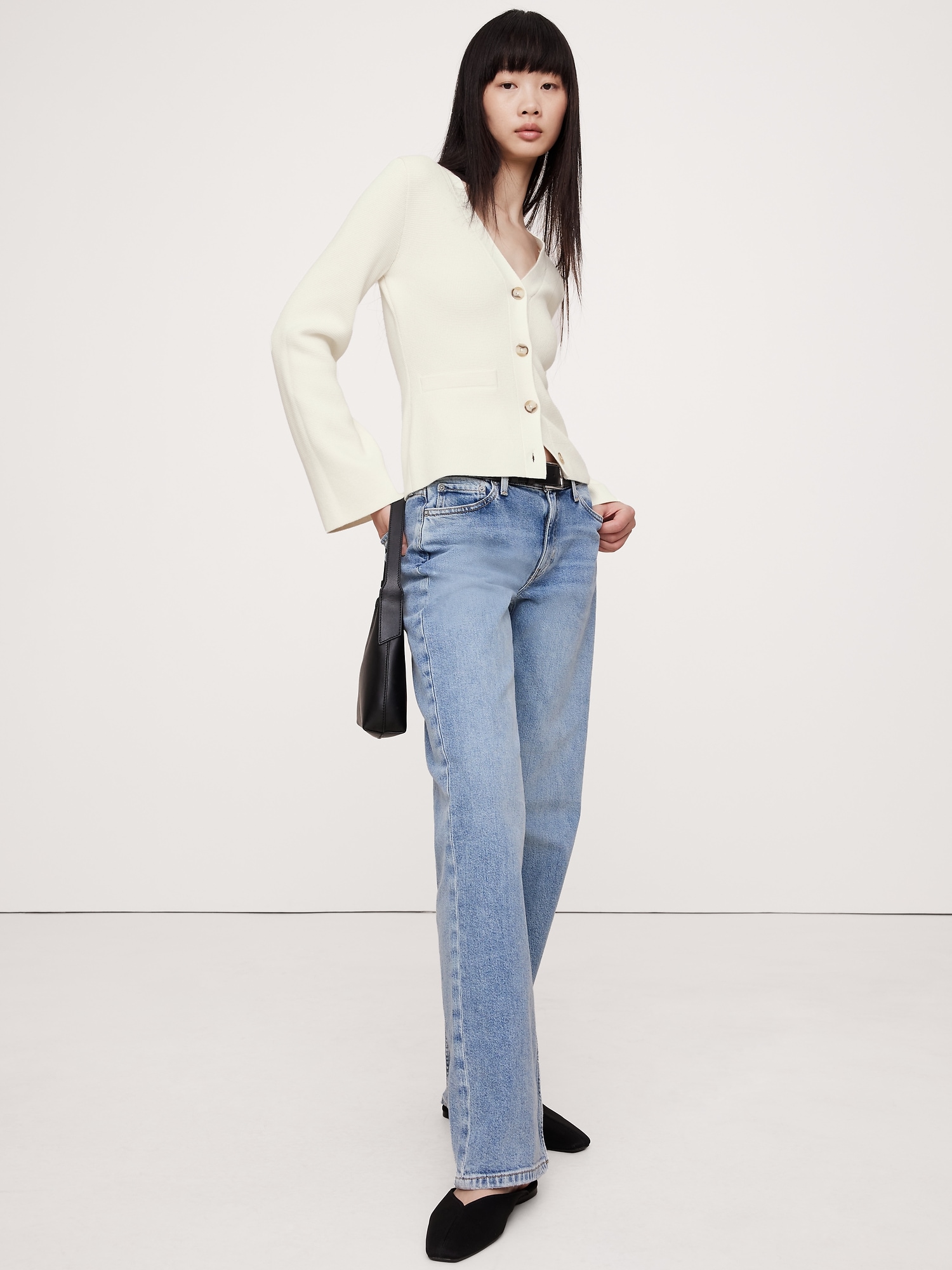 We’ve updated our cotton-silk cardigan with an on-trend flared sleeve and above-hip length so you can layer it or wear on its own.