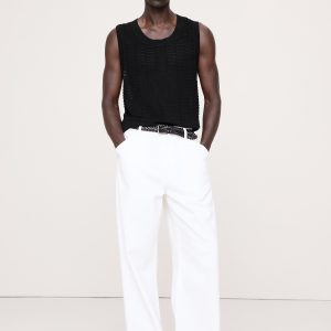 Our take on the season’s mesh tank trend, this cotton tank has an open, geometric pattern in 100% organic cotton.