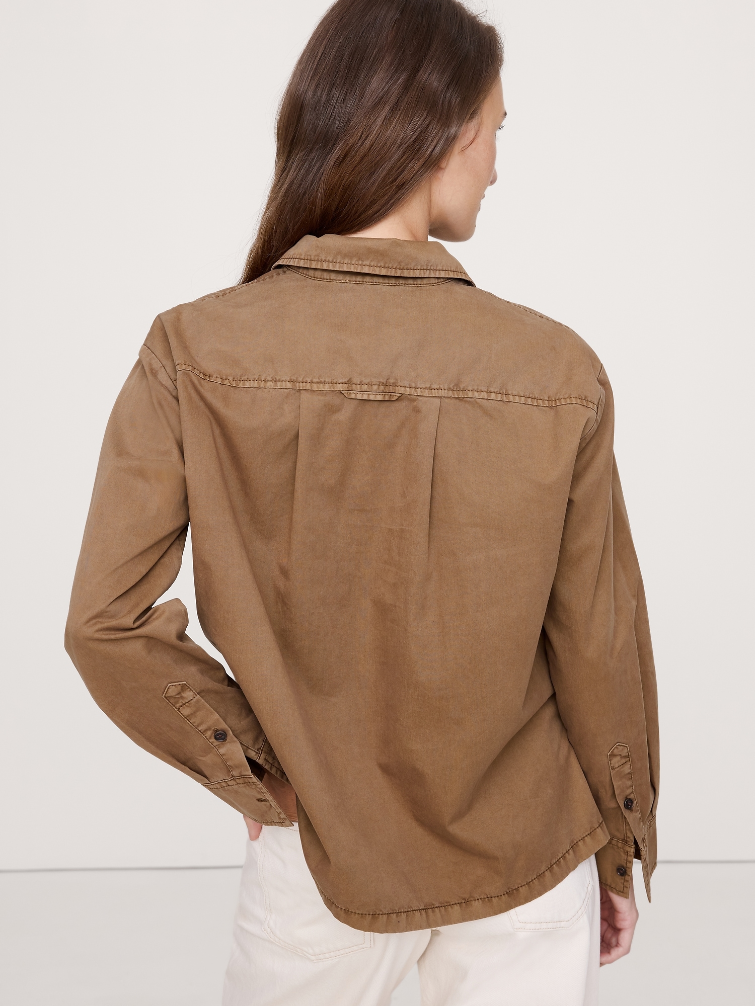You love this oversized shirt so much, we had to bring it back. This popover shirt is crafted in a cotton twill and finished with a garment wash for lived-in color and extra softness. Oversized fit: Extra room through chest, shoulders, and waist. Dropped shoulder seam. Point collar with button front. High-low hem. #826026