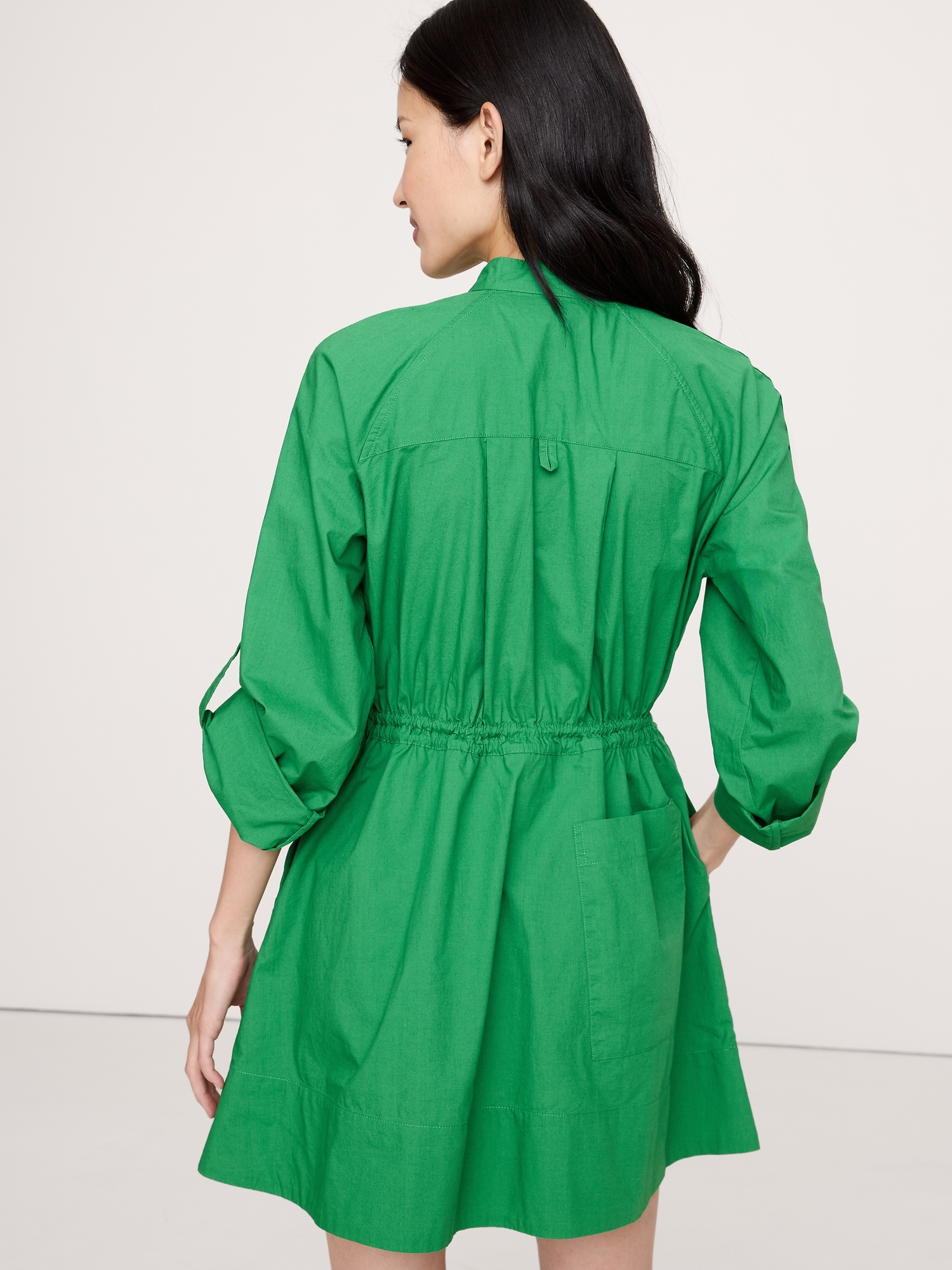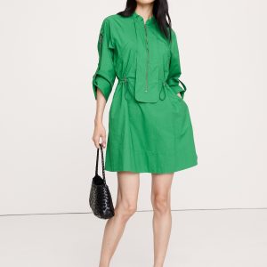 Out the door in no time. This mini dress borrows its utility detailing from classic boilersuits. Plus, we added a bungee detail to cinch the waist—in our stretch-cotton ripstop fabric, with its signature grid texture. Fit Flare: Relaxed through shoulder, sleeves, and bust, fitted waist with a flare skirt. Zip front closure. Banded collar. Front pockets with zip closure. Unlined. #818082