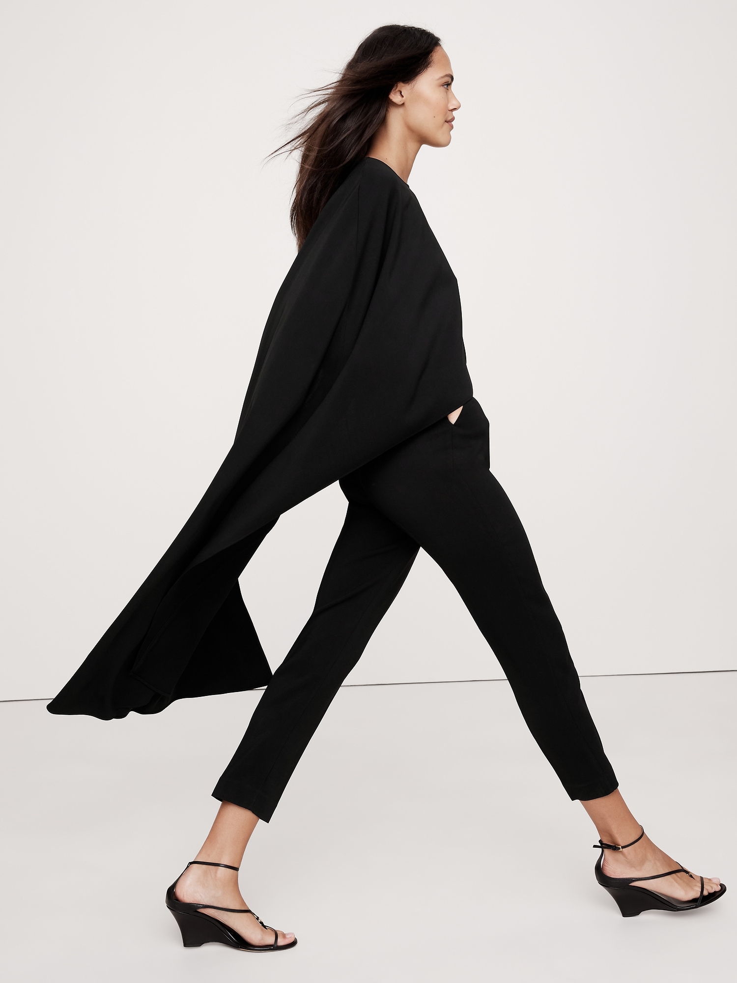 Your sign to RSVP yes. Crafted from a matte crepe fabric with cape shoulder detail, this jumpsuit has a slim fit through the hips with a slim, tapered leg.