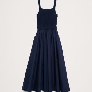 Our take on the season’s mixed-media dresses, in a midi length. Crafted in a mix of a crochet-like knit bodice and a 100% cotton poplin skirt. Did we mention it also has pockets?