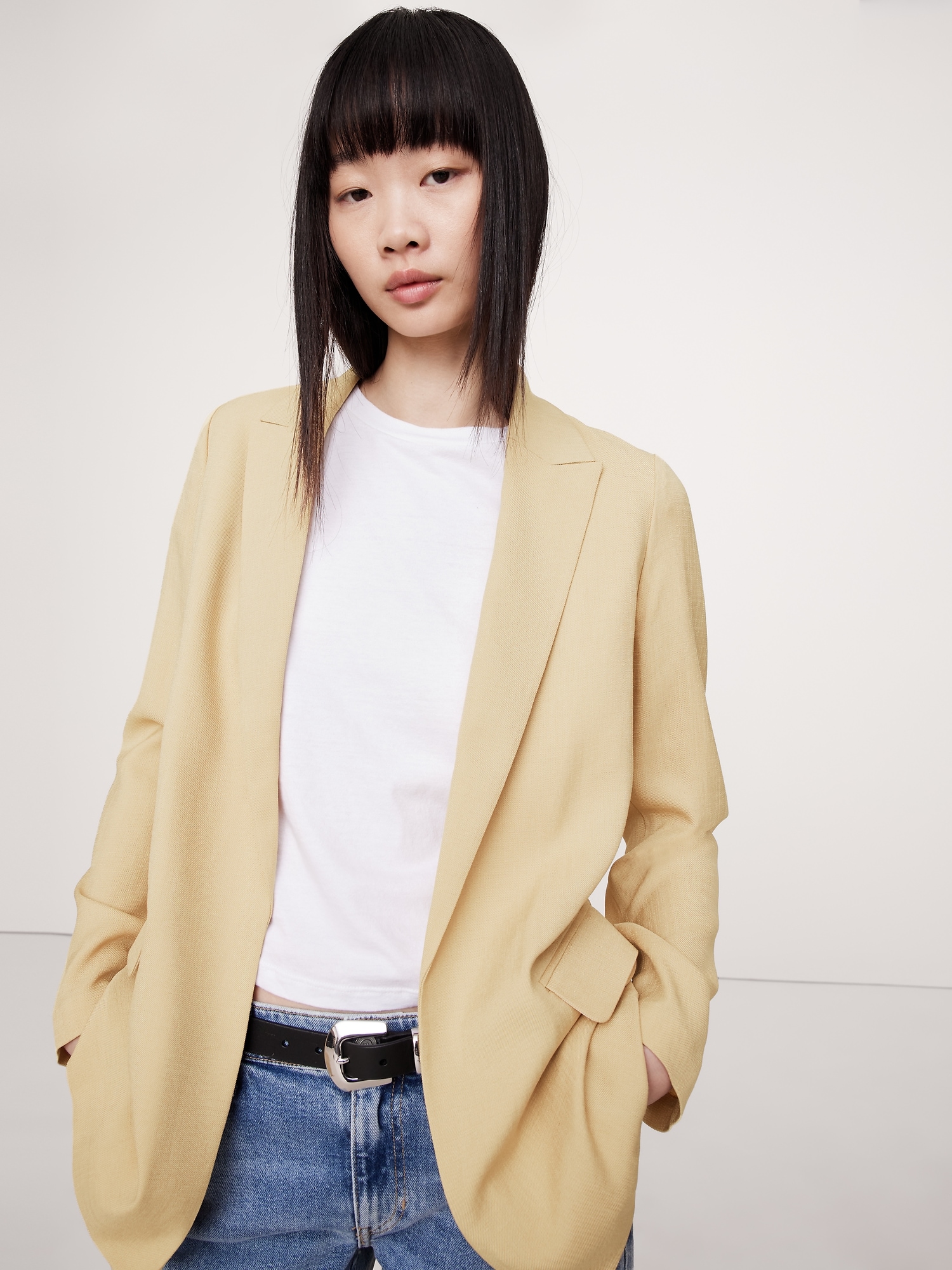 Our version of an easy, everyday blazer, cut from our premium drapey twill—a fabric we love because it strikes the perfect balance between tailored and casual-cool. Plus, we left the inside unlined for better breathability through the seasons.