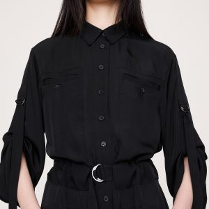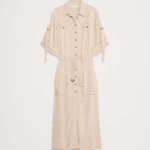 Always put-together, we love a shirt dress because you can wear it basically everywhere. Here, we imagined it with utility pockets in our drapey twill so it’s a bit more dressed up.