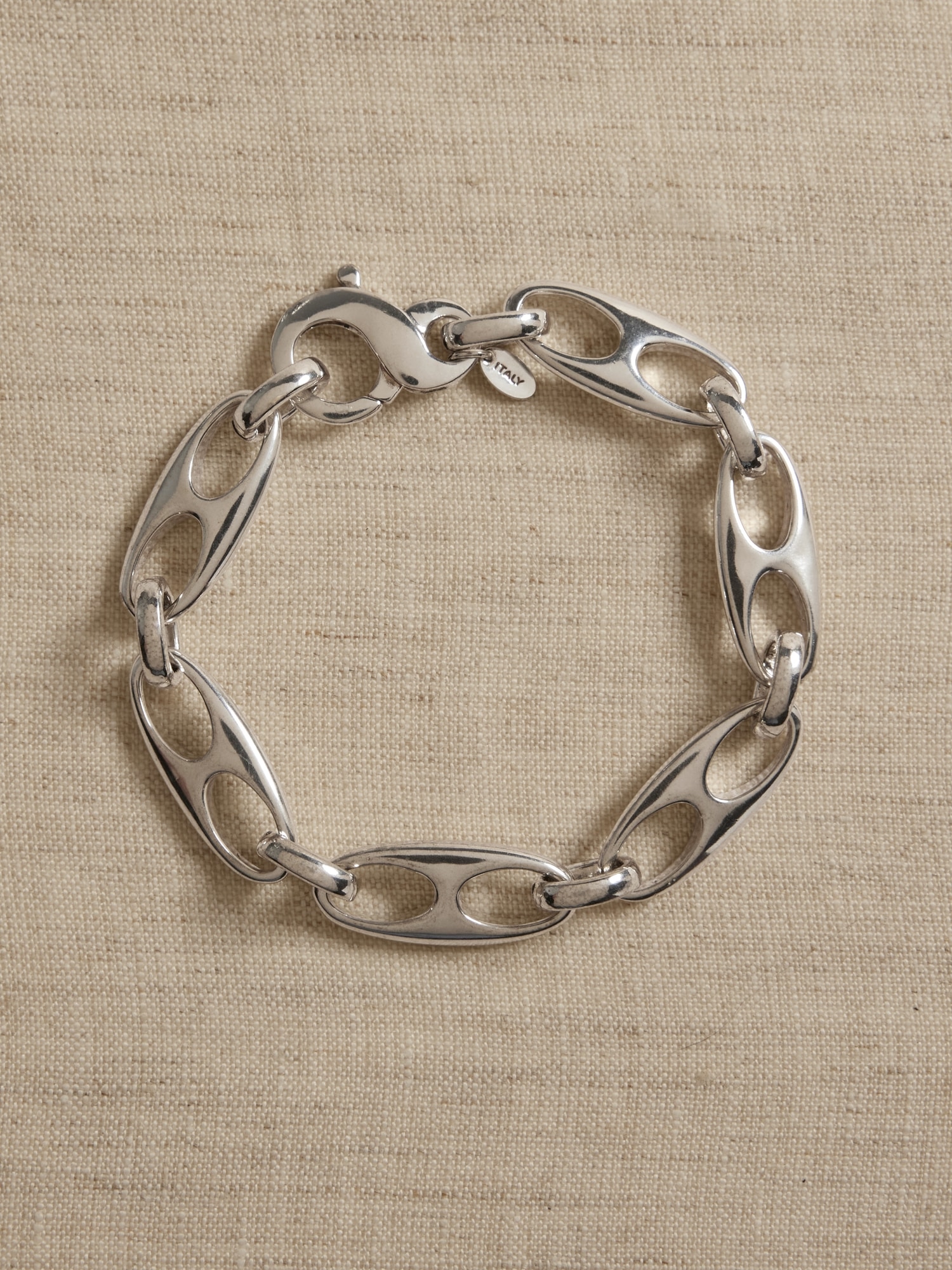 Inspired by the age-old design of nautical anchor chain and updated with a contemporary lure, elongated cast mariner links are hand-joined to create this eye-catching bracelet.