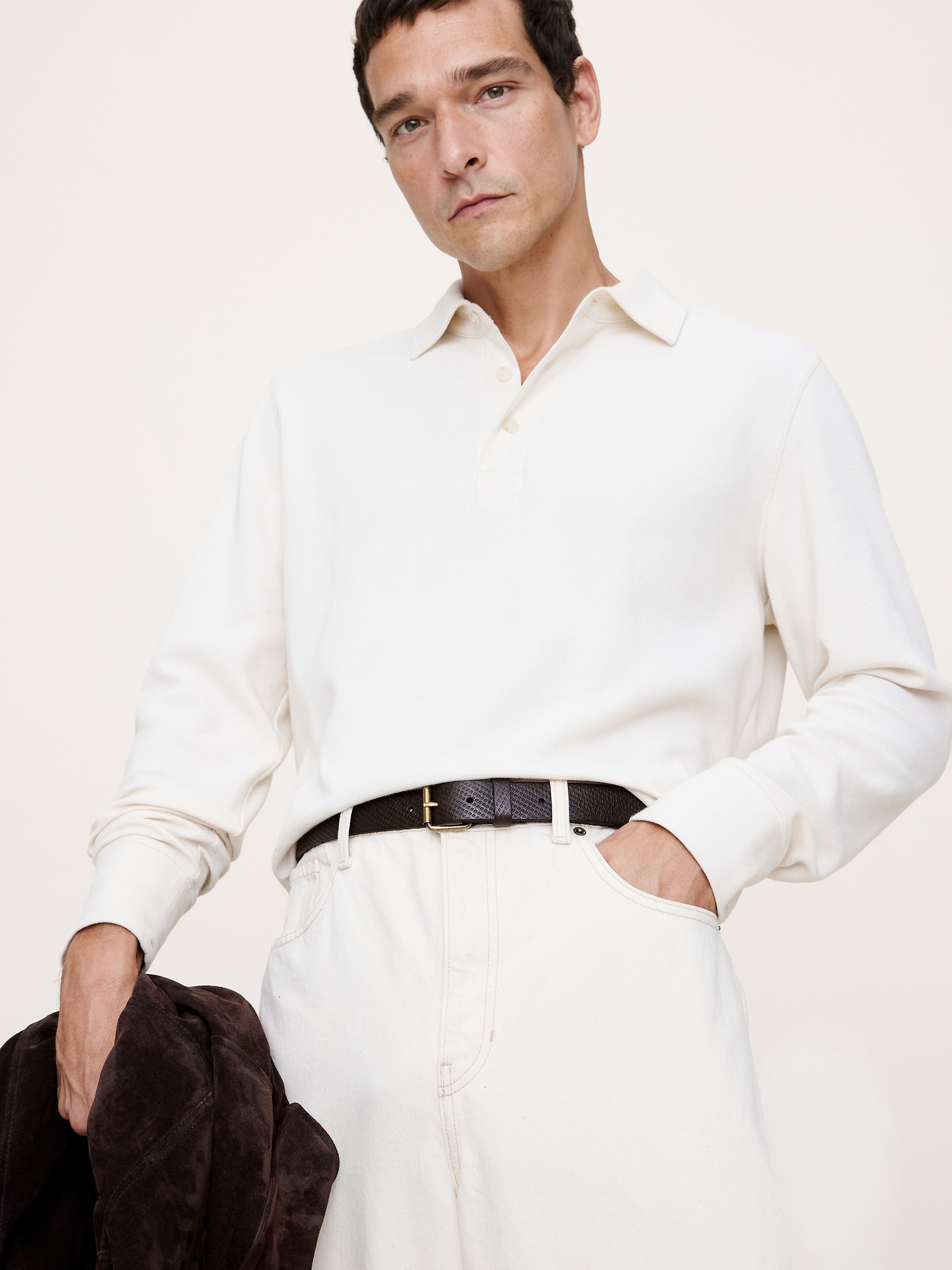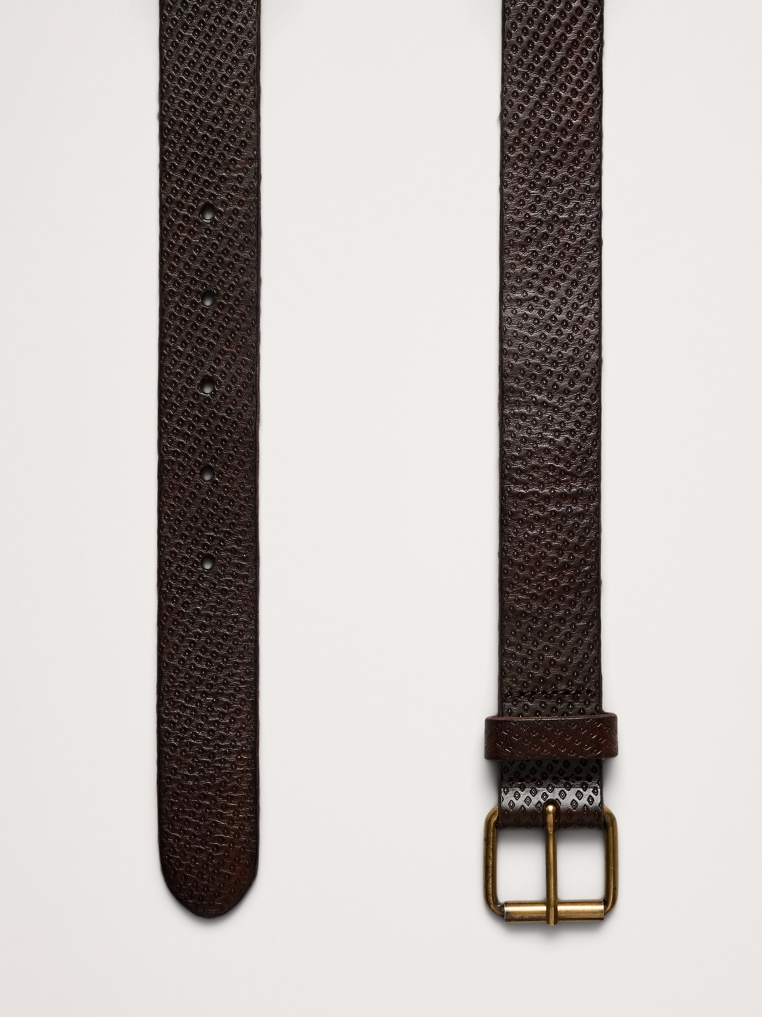 This versatile belt is cut from sturdy, embossed leather and finished with beveled edges for a sleek look that works well dressed up or down.