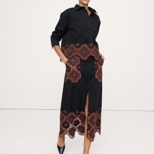 An ode to traditional anglaisethis midi has embroidered cutwork lace accents at the hem. Cut in our cold-weather ready corduroy.