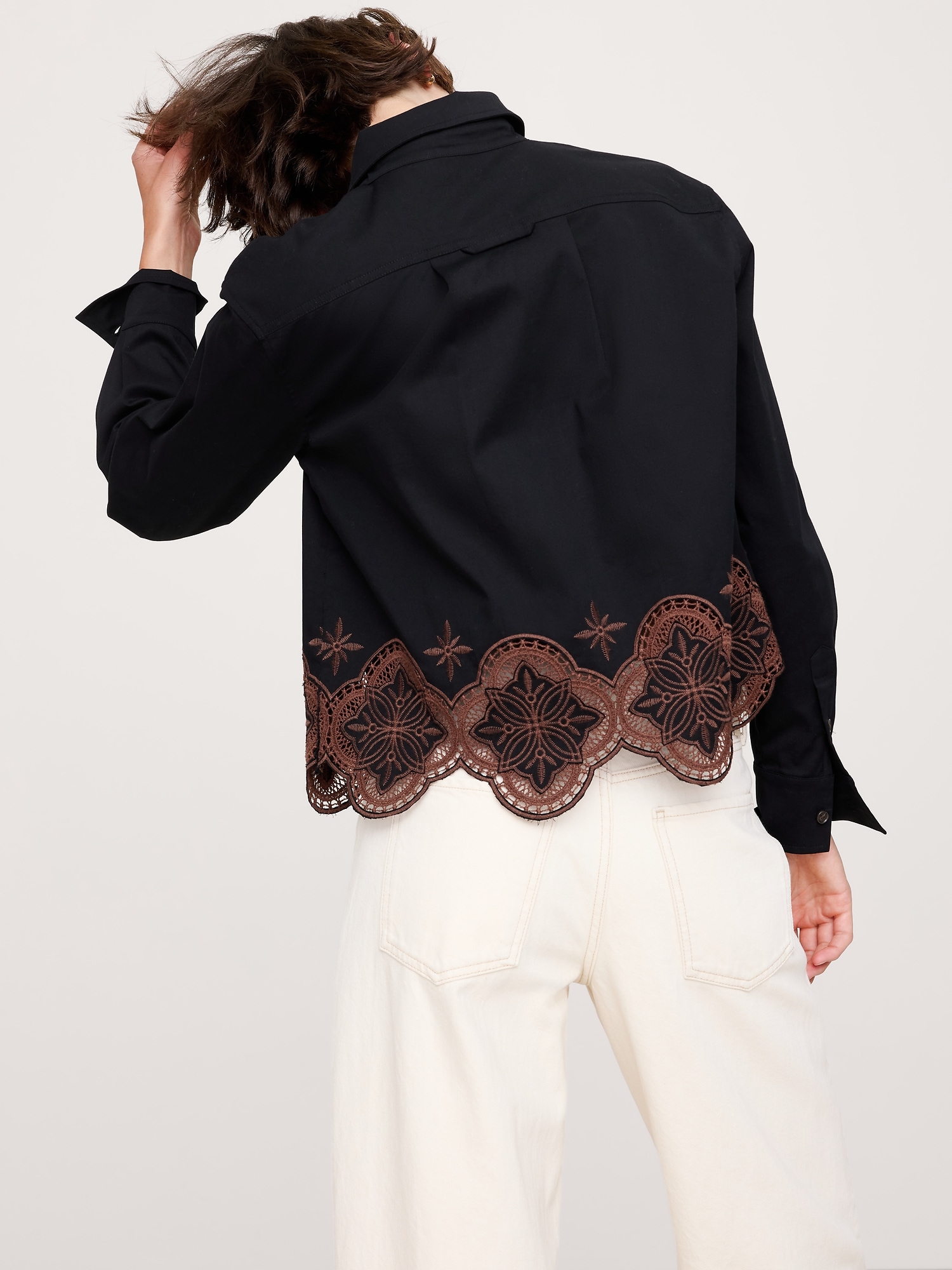 An ode to traditional anglaisein our best-selling popover shirt silhouette. This one’s crafted in a stretch-cotton twill and finished with a garment wash for softness.