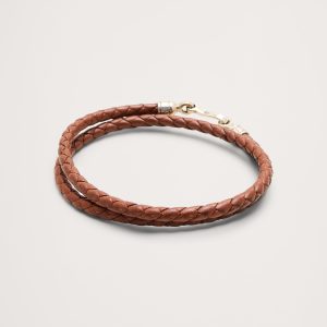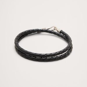 Braided vegetable-dyed European leather wraps twice around the wrist, finished with a sterling silver hook-and-eye closure